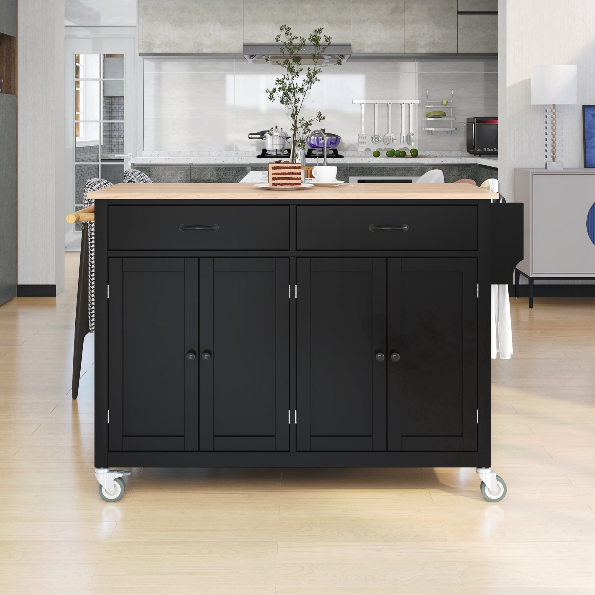 Rolling Mobile Kitchen Island With Solid Wood Top And Locking Wheels(no include stool)