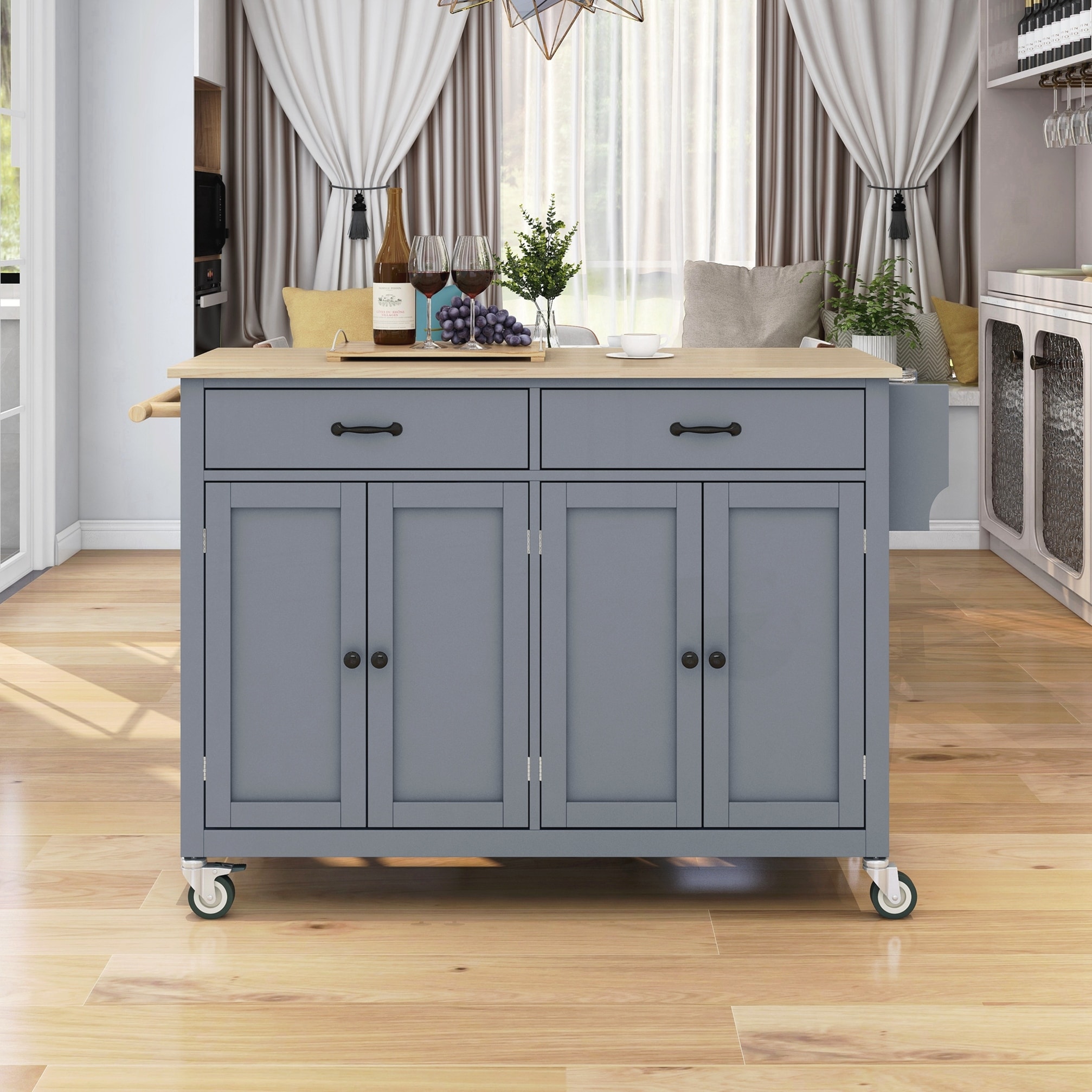 Kitchen Island with Drop Leaf, Spice Rack and Drawer