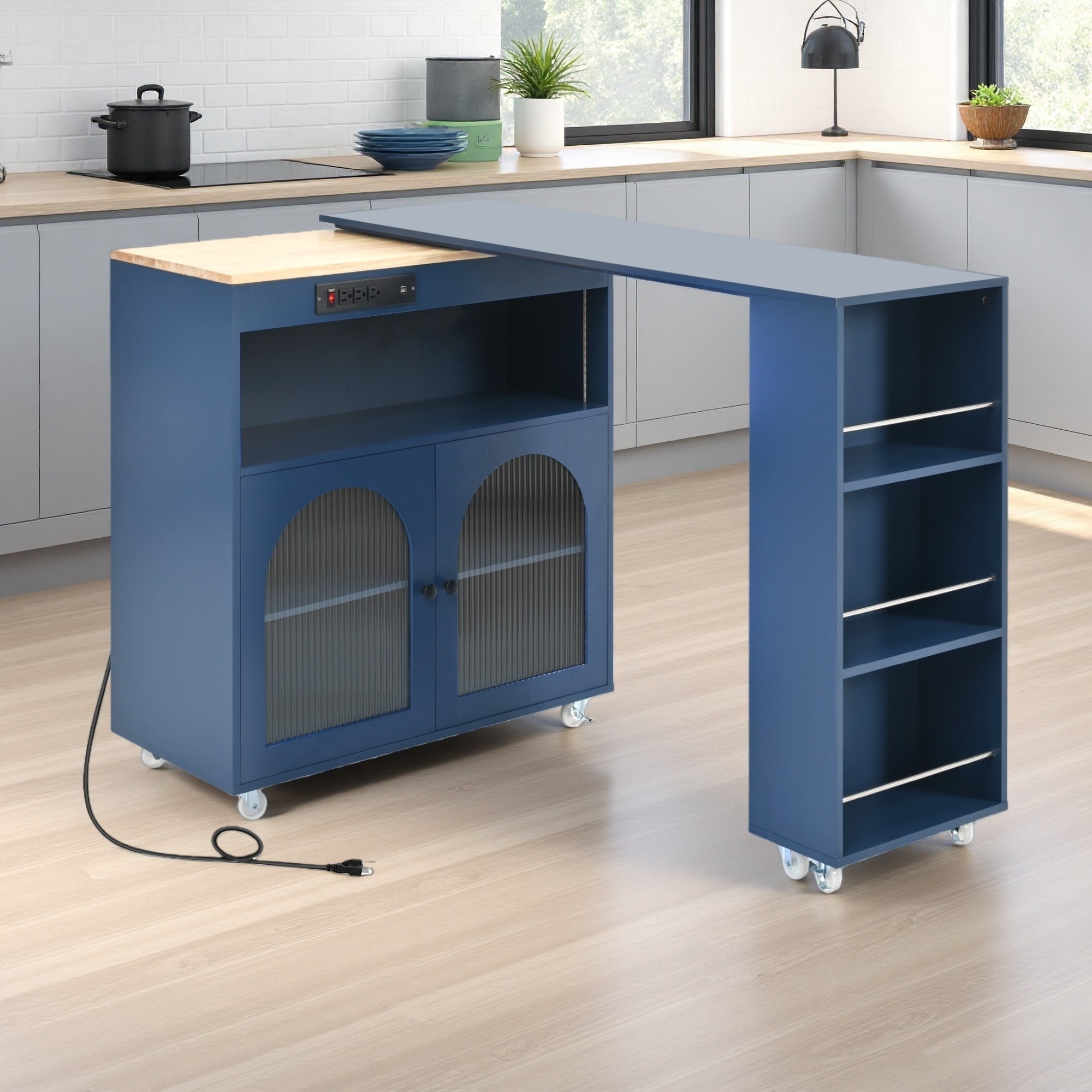 Kitchen Island with 2 Fluted Glass Doors, a Storage Compartment and Side 3 Open Shelves