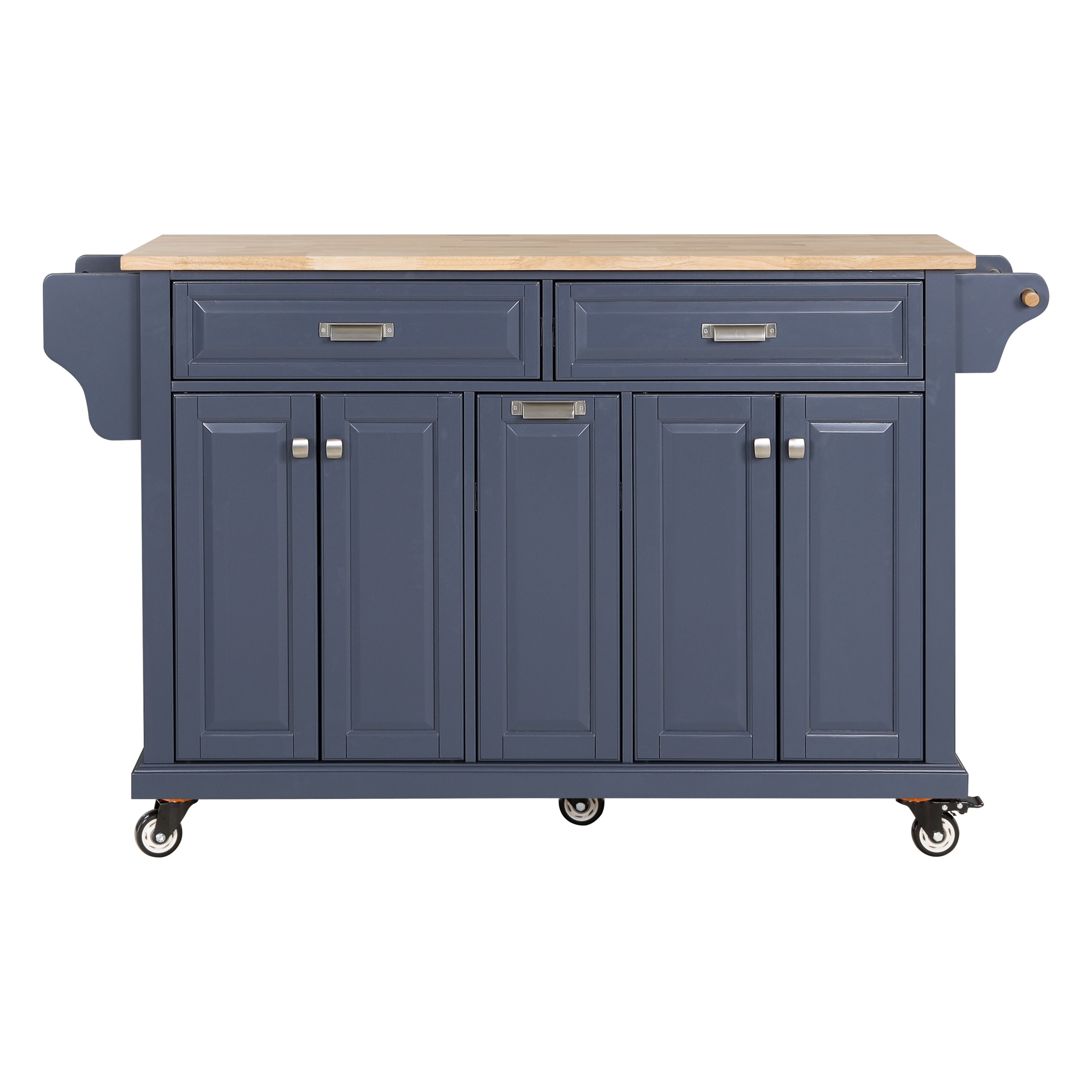 Modern Kitchen Island with Storage Cabinets, 5 Drawer, Adjustable Shelves Towel Rack and Spice Rack, for Kitchen, Blue