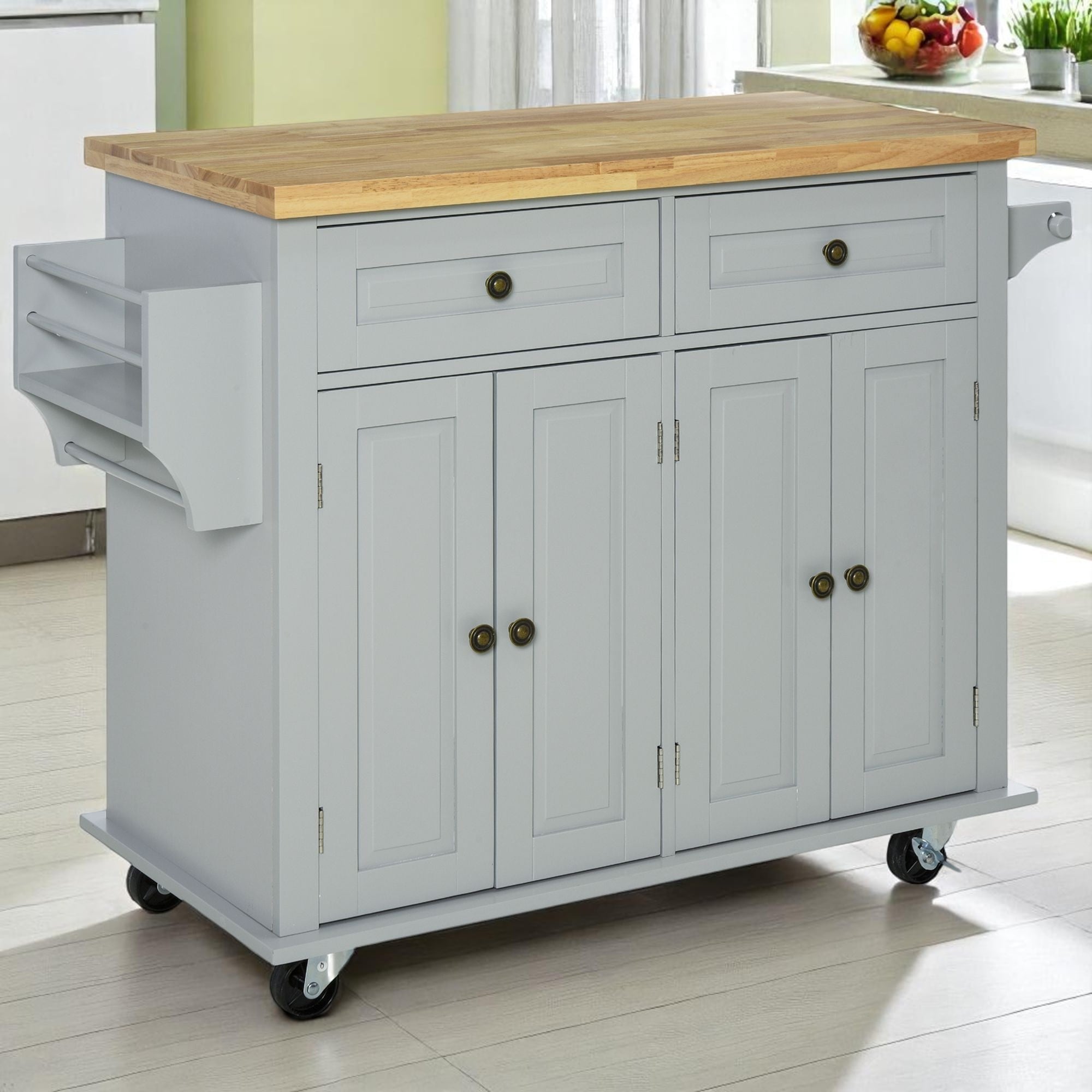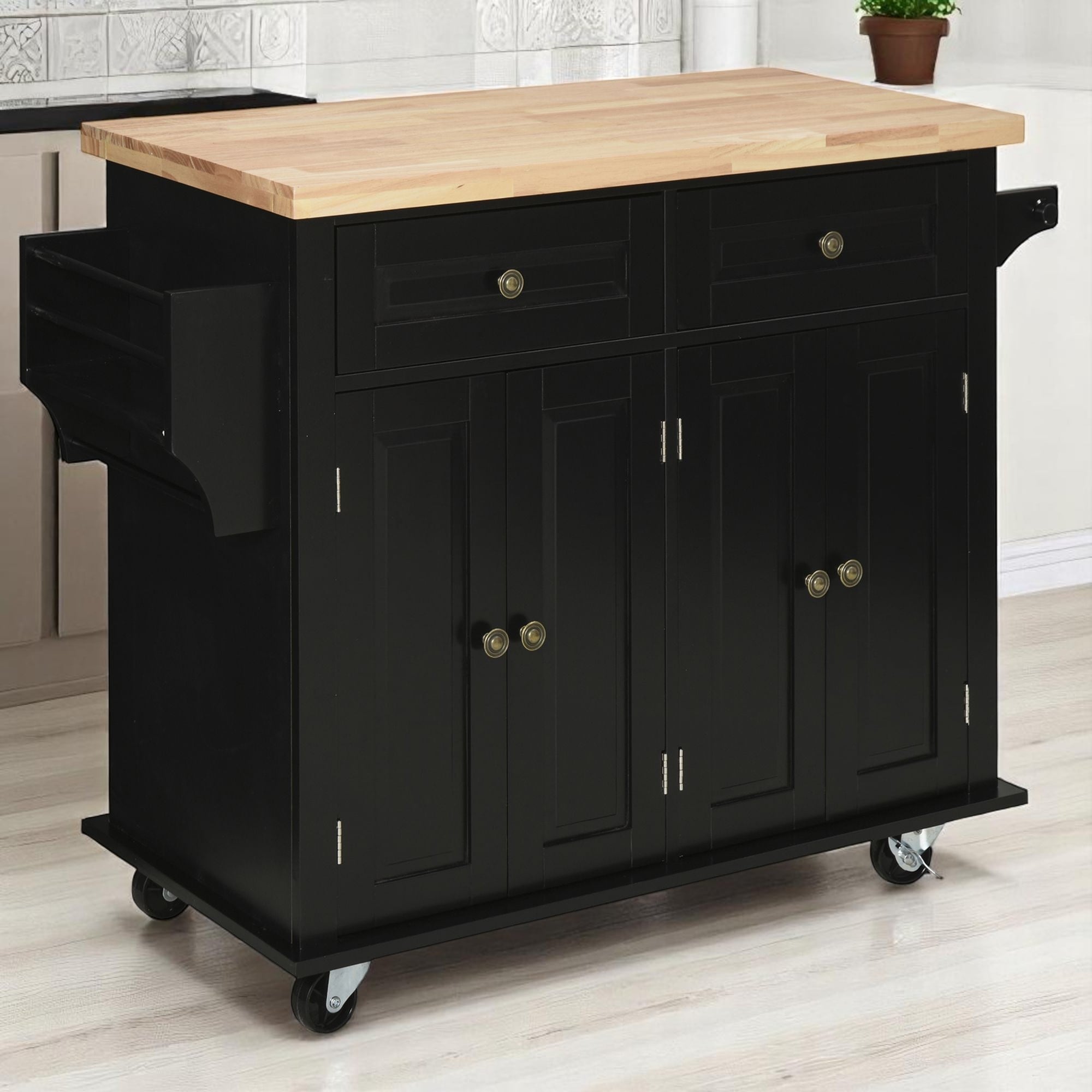 Rolling Kitchen Island Cart with Rubberwood Top, Adjustable Shelves, Storage Cabinet, 2 Drawers for Dining Room or Kitchen