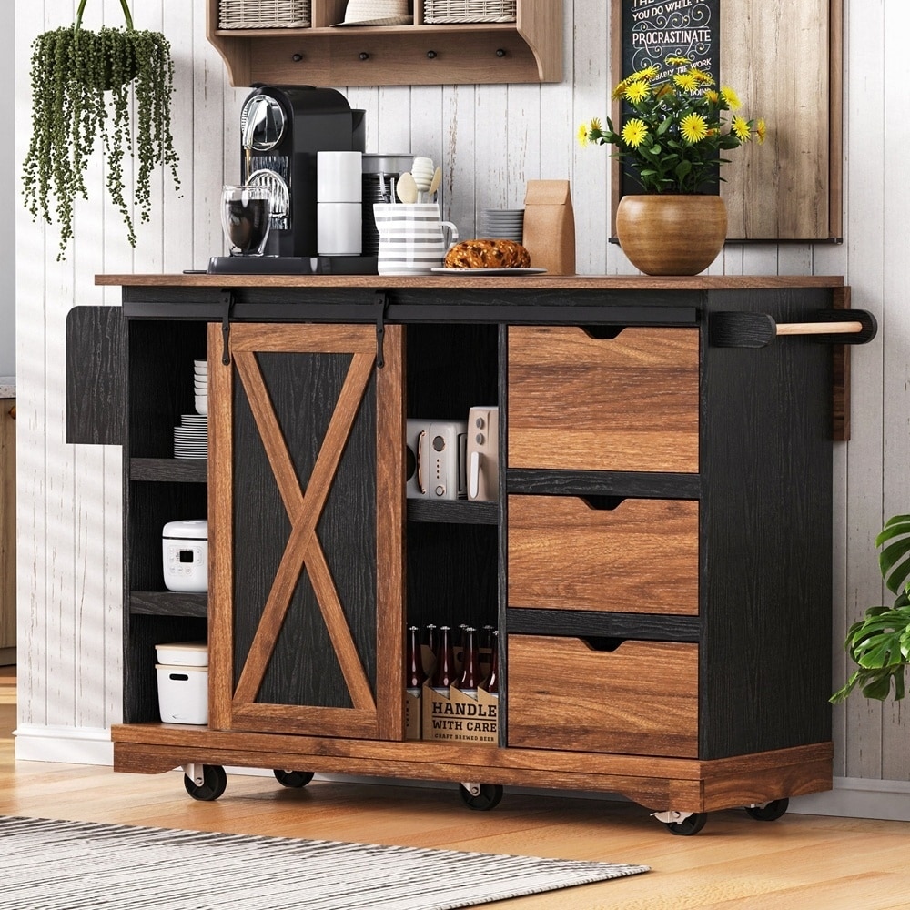 50.7" Kitchen Island with Storage Can Cabinet and Pull Out Cabinet 5 Wheels with Drop Leaf, 2 Drawers, 1Door for Kitchen - N/A