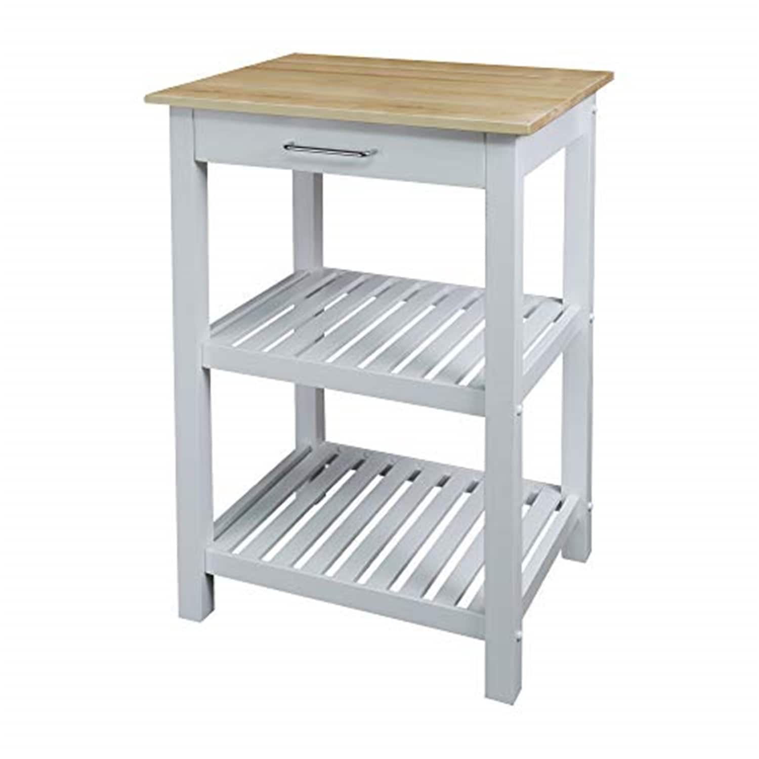 Kitchen Island Cart with Storage - 23" Wide Rolling Kitchen Island, Maple Top, Drawer & Shelves