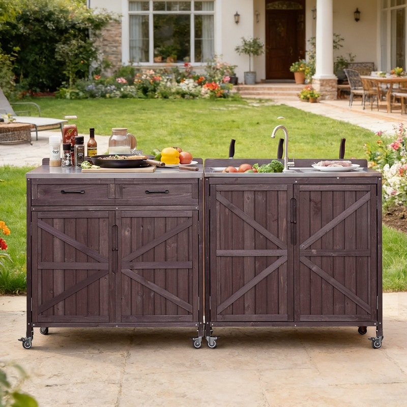 Outdoor Kitchen Island Patio Kitchen Island Outdoor Kitchen Cart Portable Prep Station with Lockable Wheels