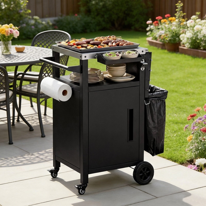 33.9” Outdoor Pizza Oven Table, Rolling Stainless Steel Grill Table with Storage for BBQ & Backyard, Waterproof Cover Included
