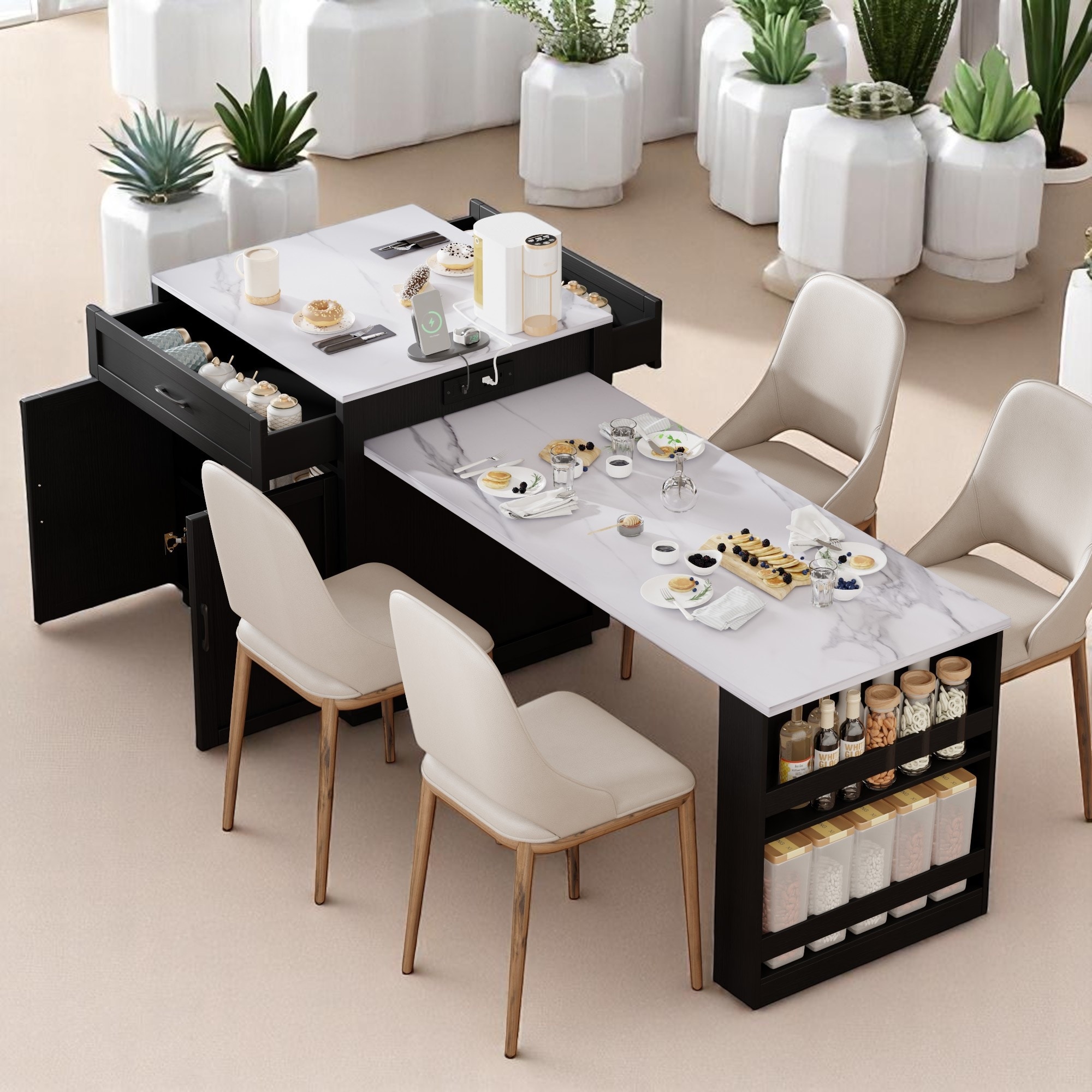 Rolling Kitchen Island: Extended Table, Power Outlets, Glass Doors