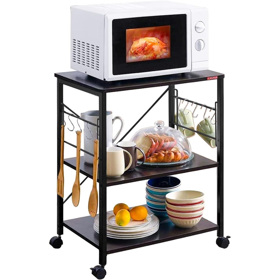 Kitchen Stand Microwave Cart 23.7'' for Small Space, Coffee Bar Table 3-Tier Rolling Utility Microwave Stand on Wheels