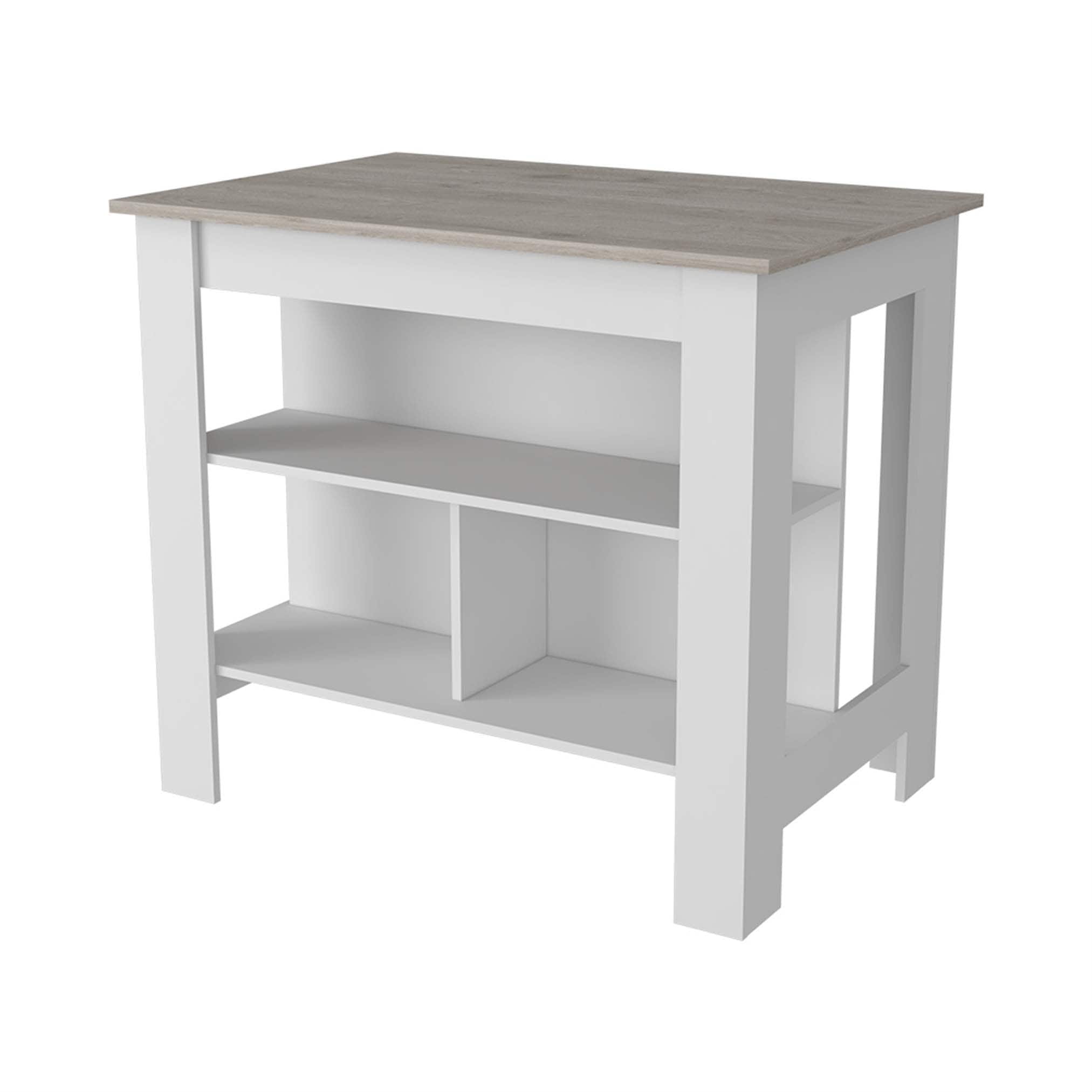 White/Macadamia Kitchen Island, 35" H, with Storage Cabinet and 3 Shelves for Kitchen Storage