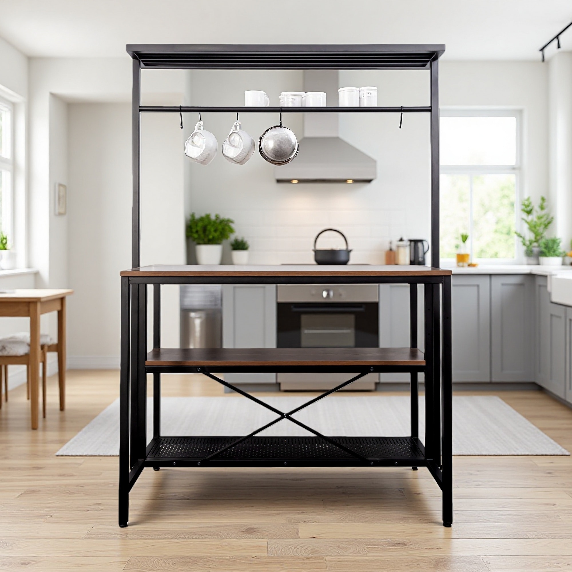 Kitchen Island with Open Shelf and 3 Hooks for Kitchen, Dining Room, Living Room