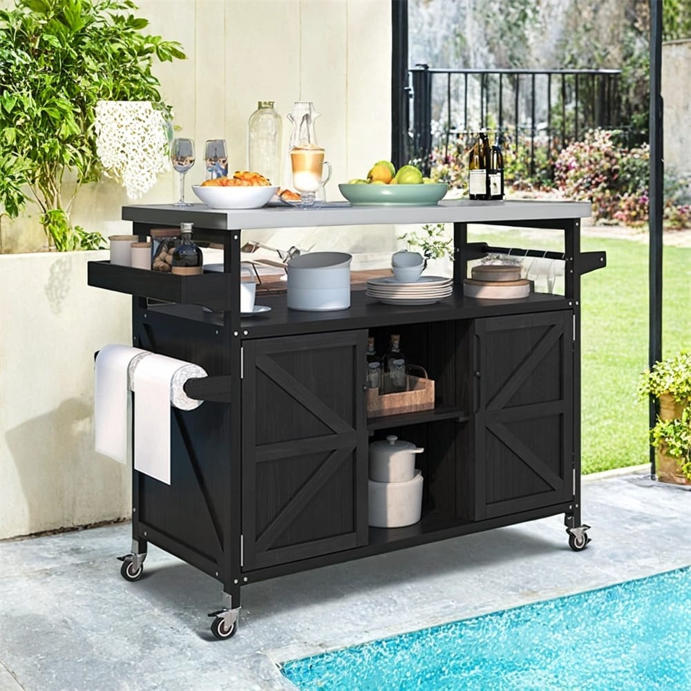 Outdoor Kitchen Island,Rolling Bar Cart & Storage Cabinet,Grill Table