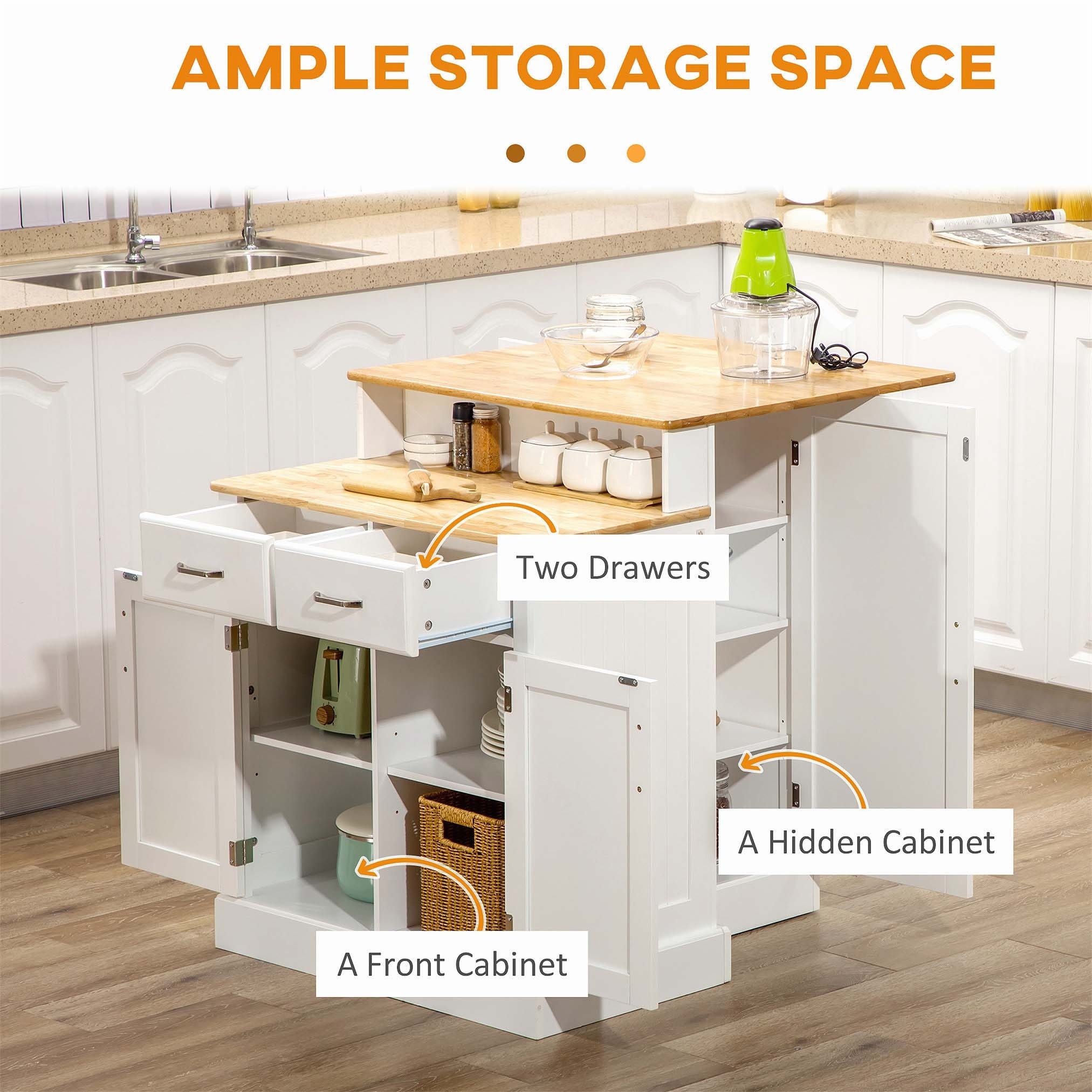 Kitchen Island with Drop Leaf,Power Outlet,Rolling Kitchen Cart on 5 Wheels for Kitchen,Dining Room(Not include bar stools)