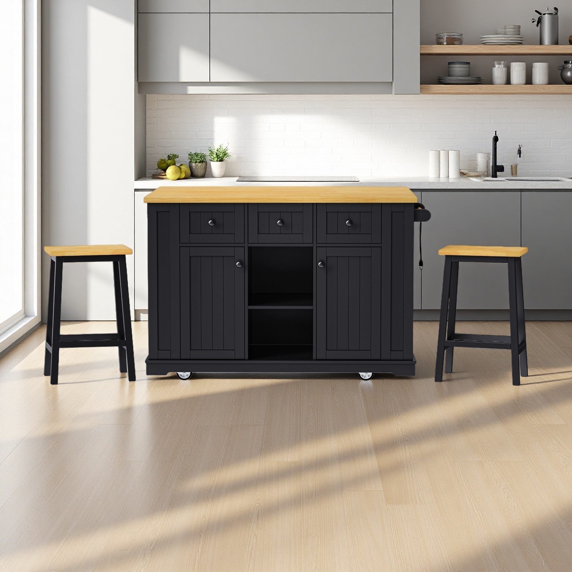 Kitchen Island with 2 Bar Stools, Internal Storage Rack and 3 Drawers