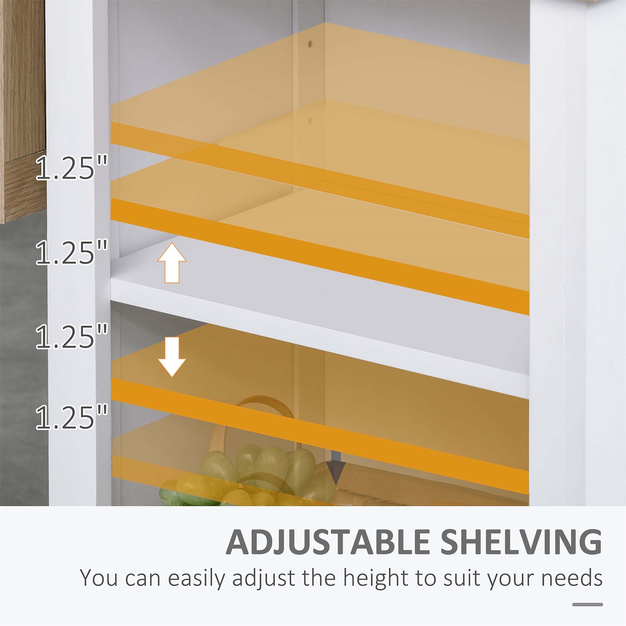 White and Dark Brown Kitchen Island, Two Cabinets, Three Open Shelves for Storage