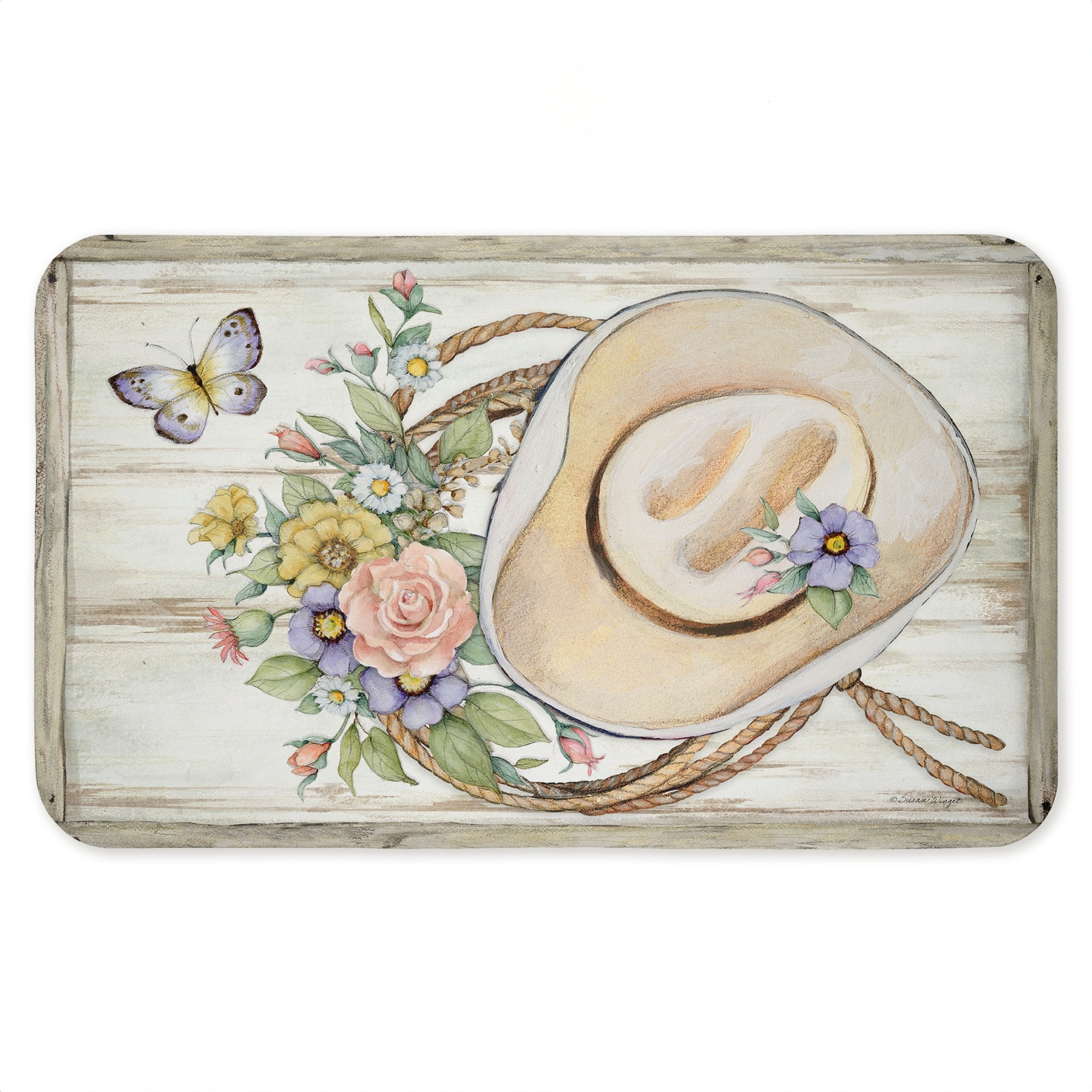 Stupell Shabby Chic Floral Cowboy Hat Printed Anti-Fatigue Floor Mat, design by Susan Winget, 30"x18"