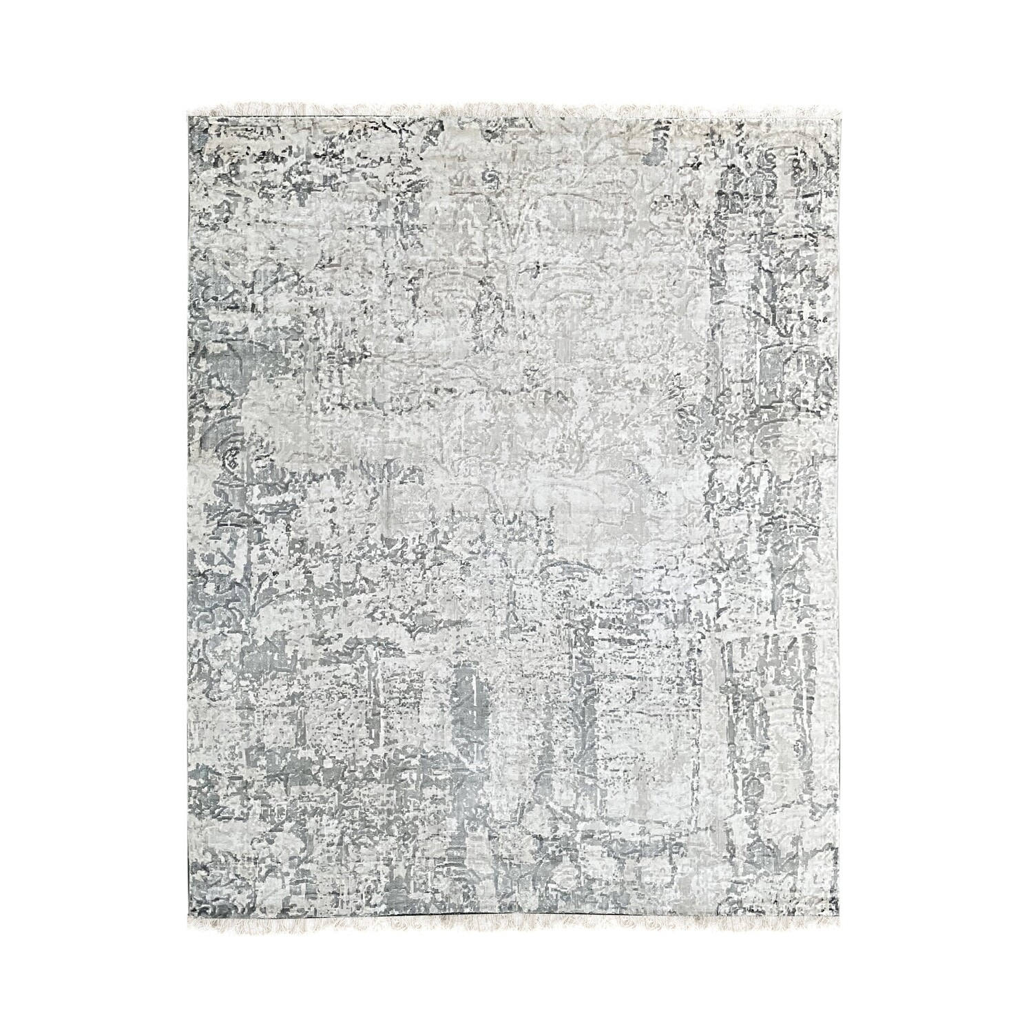Ivory Gray Hand Knotted Wool Transitional Modern Rug 7' x 9' - Ornamental Medallion 0.5" Pile - N/A