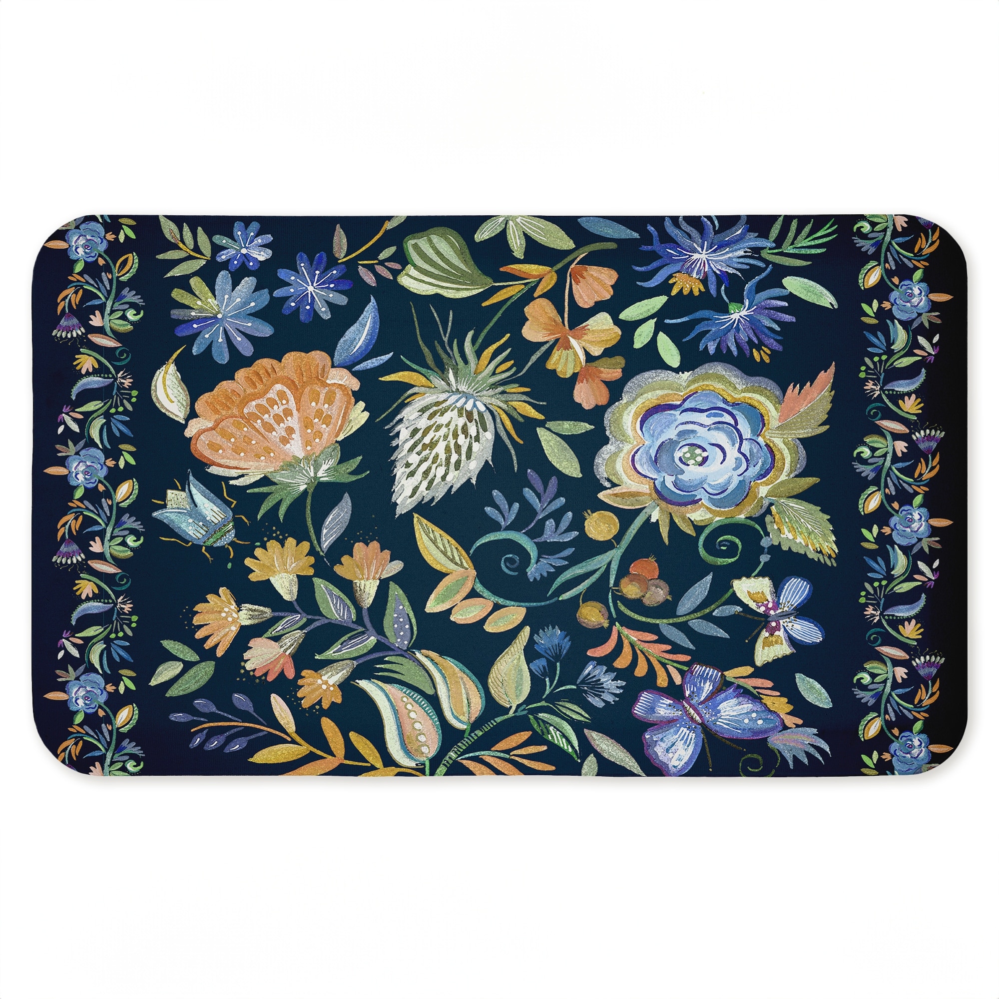 Stupell Painted Blue Floral on Black Printed Anti-Fatigue Floor Mat, design by Ani Del Sol, 30"x18"