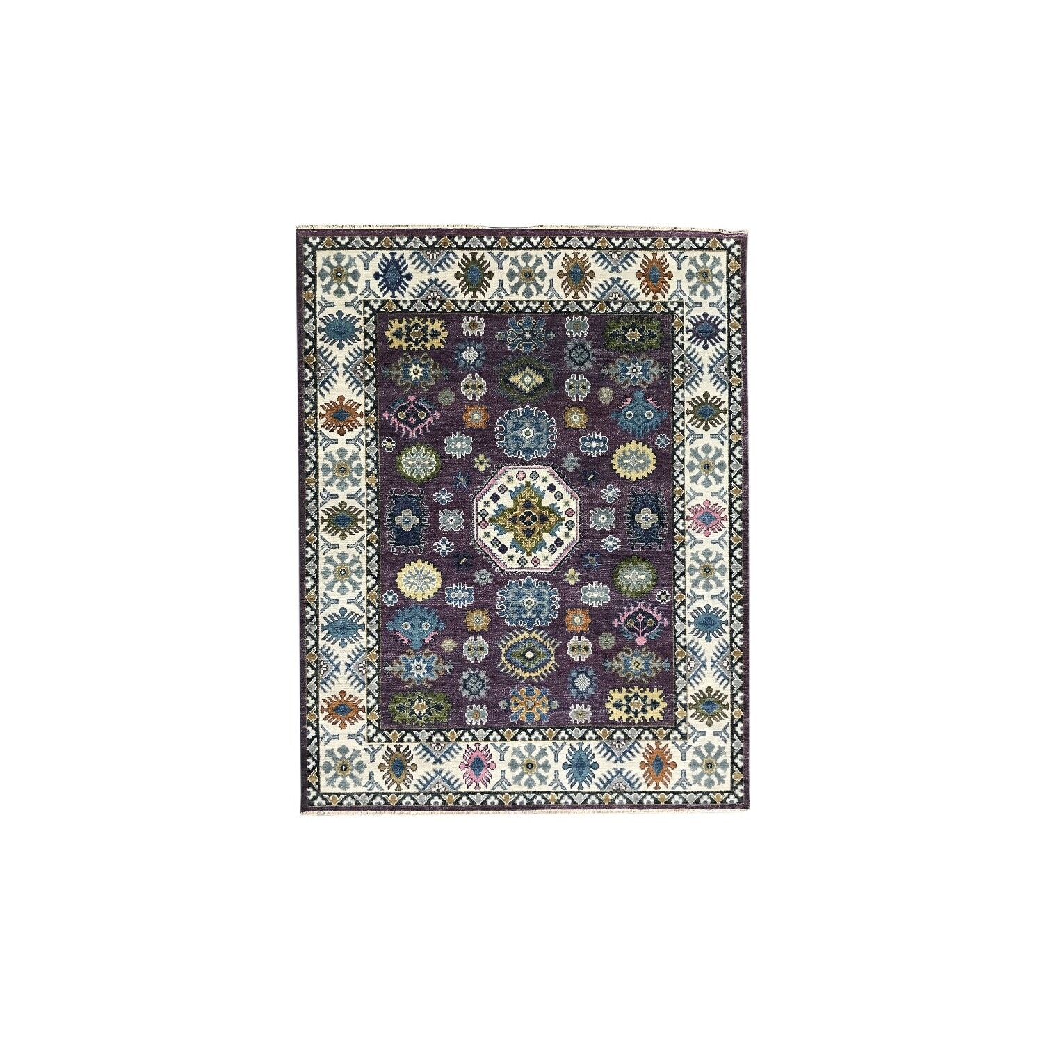 Purple Ivory Hand Knotted Wool Traditional Rug 8' x 10' - Ornamental Medallion 0.5" Pile Design - N/A