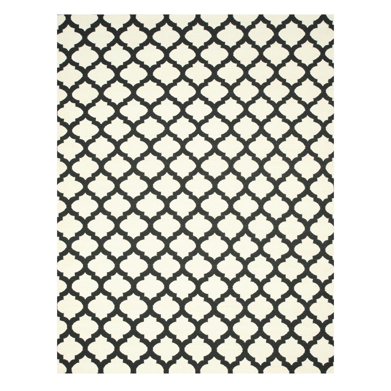 Black Wool Geometric Reversible Rug 8x10 - Modern Trellis Flatweave with Handmade Elegance - N/A