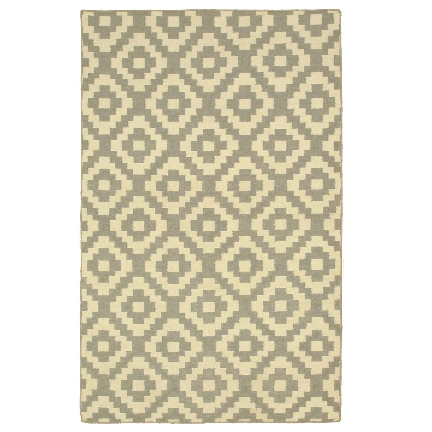 Gray Wool Flatweave Reversible Rug 8x10 - Contemporary Handmade Look with Elegant Trellis Motif - N/A