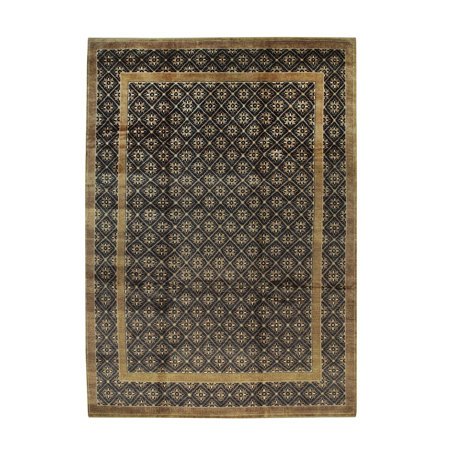 Brown Handmade Wool Transitional Rug 8'9 x 12'3 - Hand Knotted Natural Dyes Soft Pile Cotton Foundation - N/A