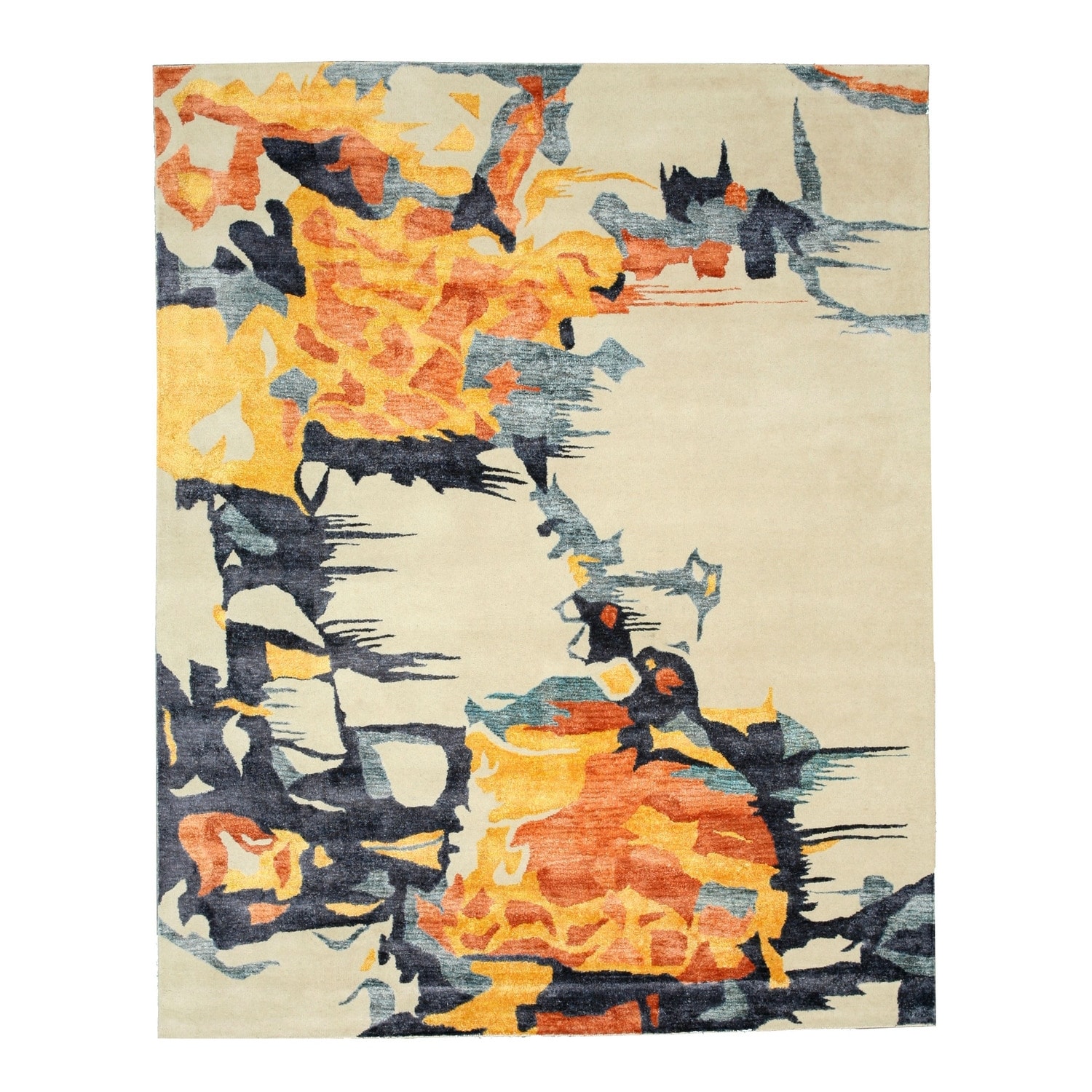 Ivory Hand-Tufted Wool & Viscose Contemporary Bamboo Picaso Rug, 5' x 8', Abstract Pattern with Blue, Orange & Yellow Accents