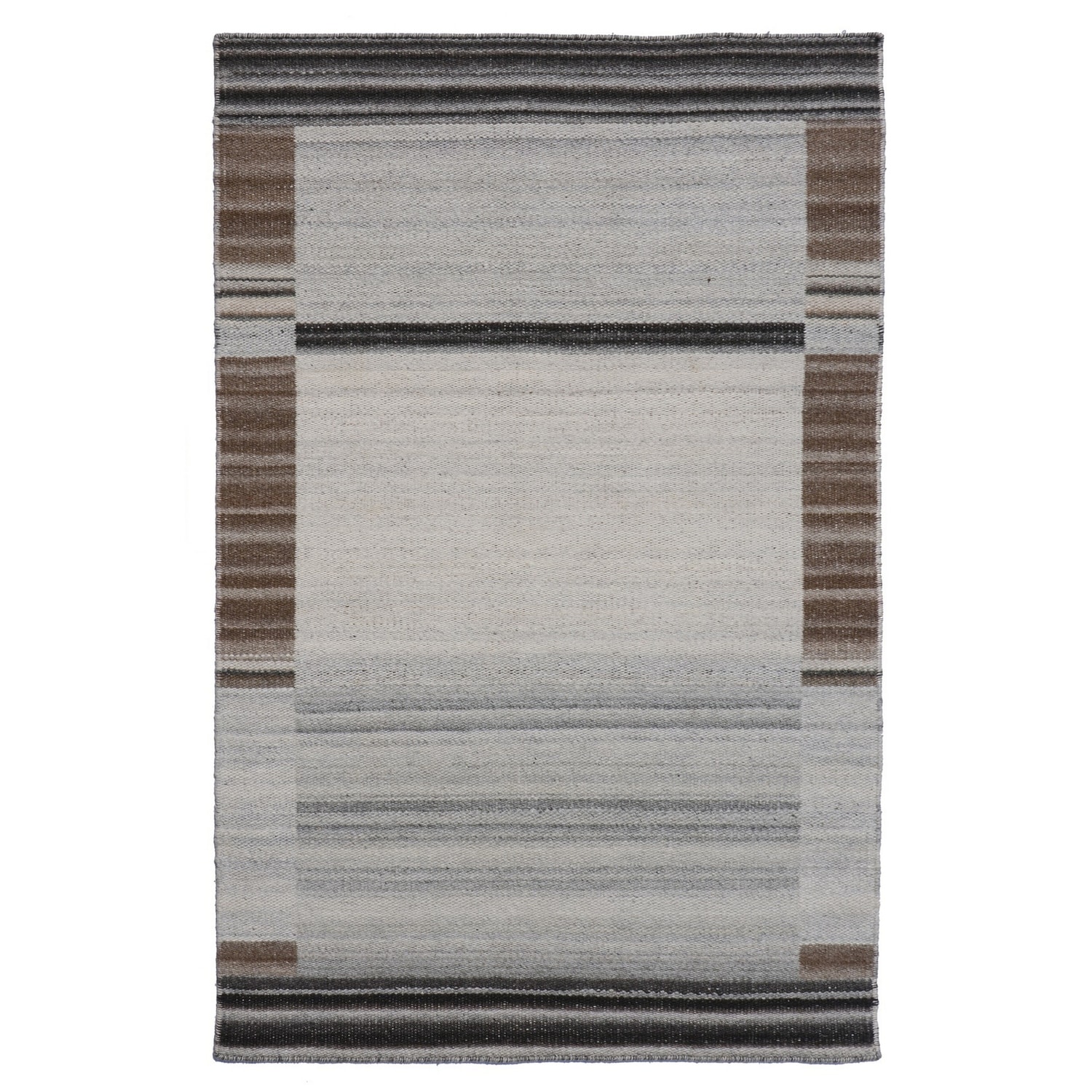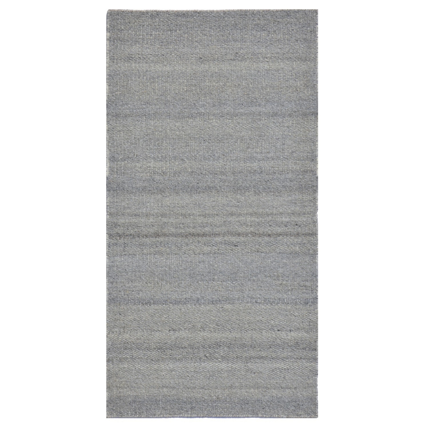 Gray Hand Woven Wool Viscose Modern Reversible Flat Weave 3' x 5' - Soft Brilliant Colors Affordable - N/A