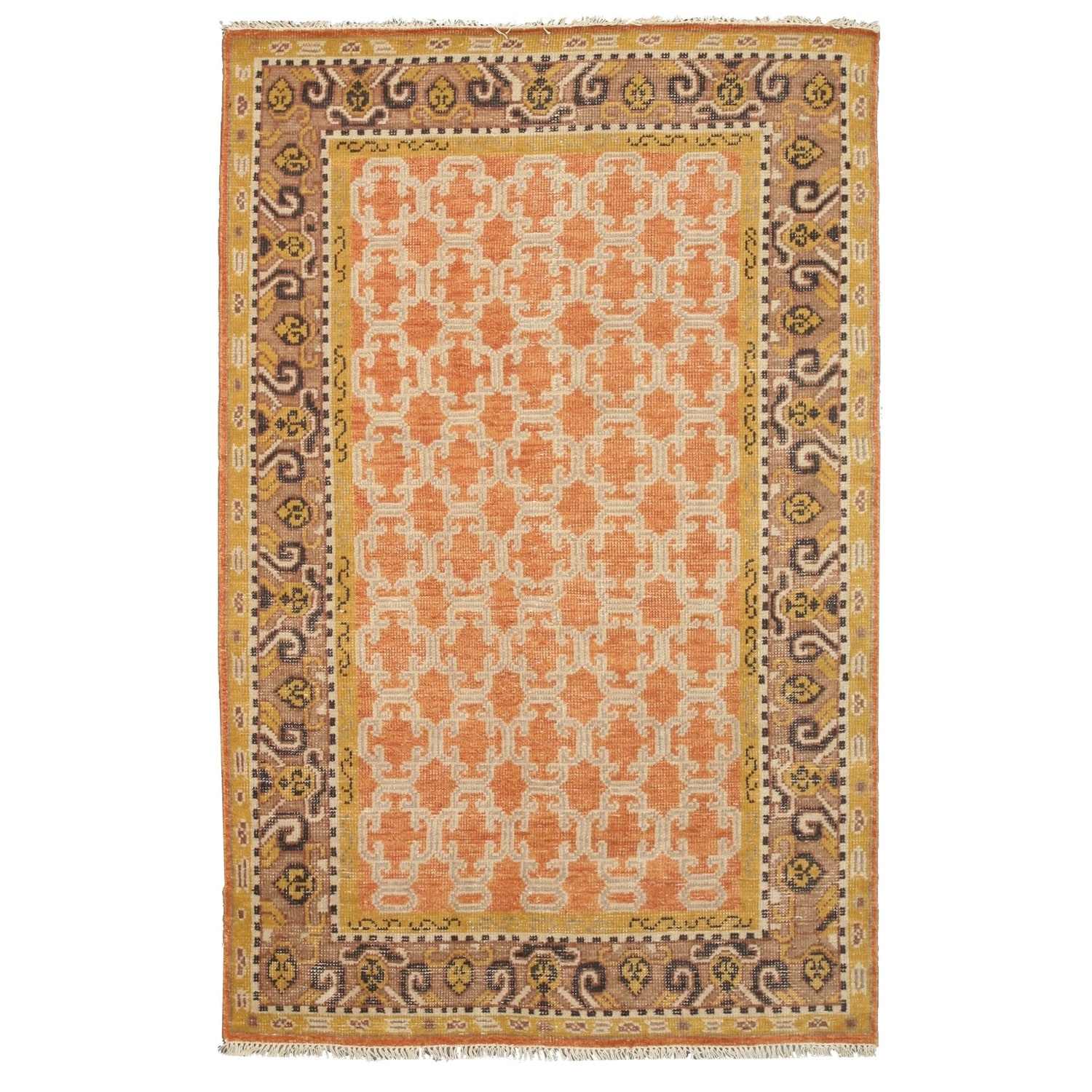 Orange Hand Knotted Wool Traditional Rug 9x12 - Rich Geometric Pattern with Handwoven Luxury and Classic Style - N/A