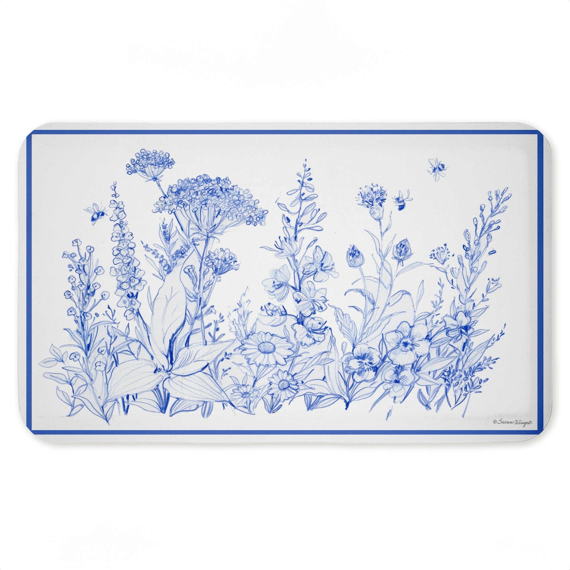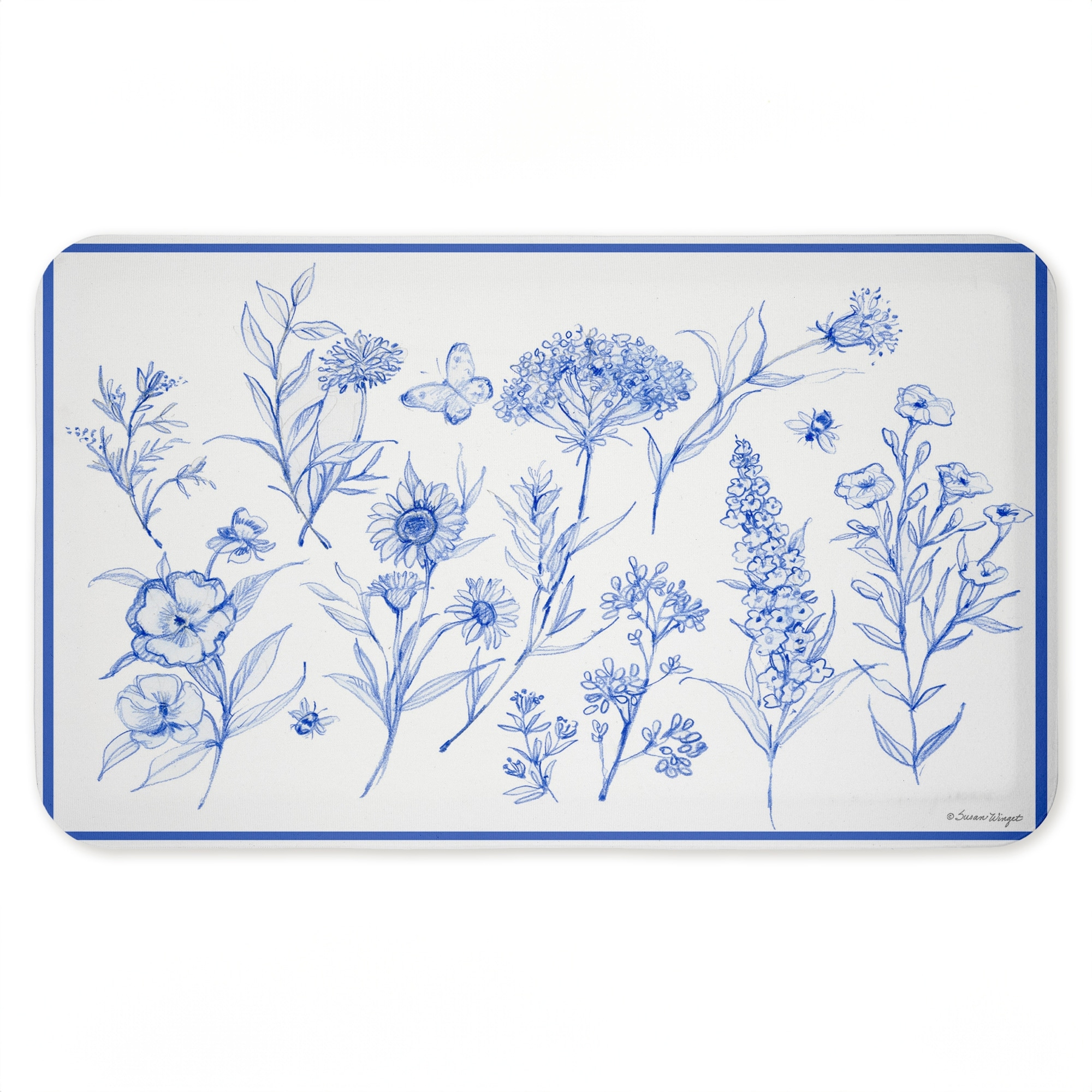 Stupell Blue Flowers Printed Anti-Fatigue Floor Mat, 30"x18"
