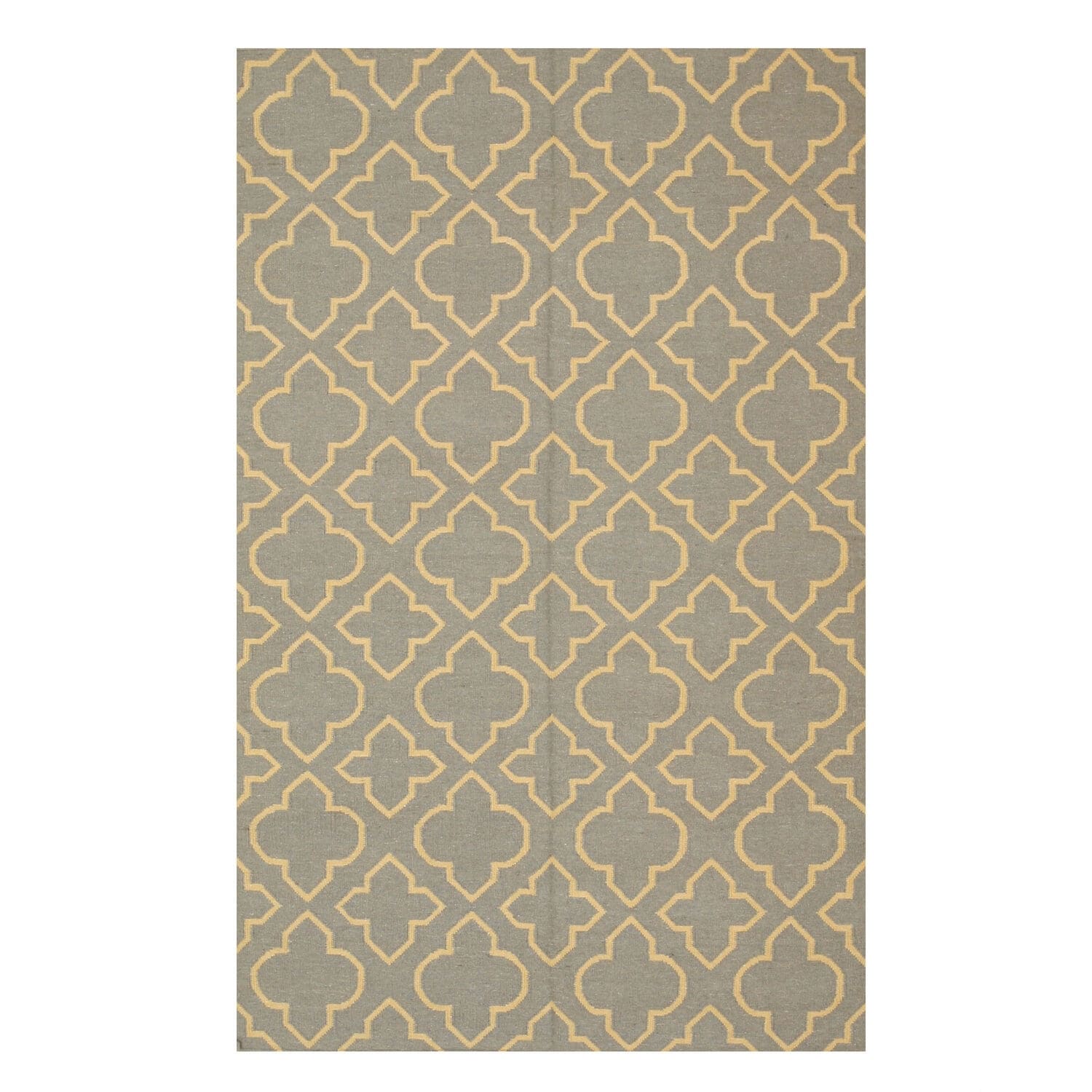 Blue Wool Reversible Flatweave Rug 5x8 - Contemporary Handmade Design with Refined Detailing - N/A