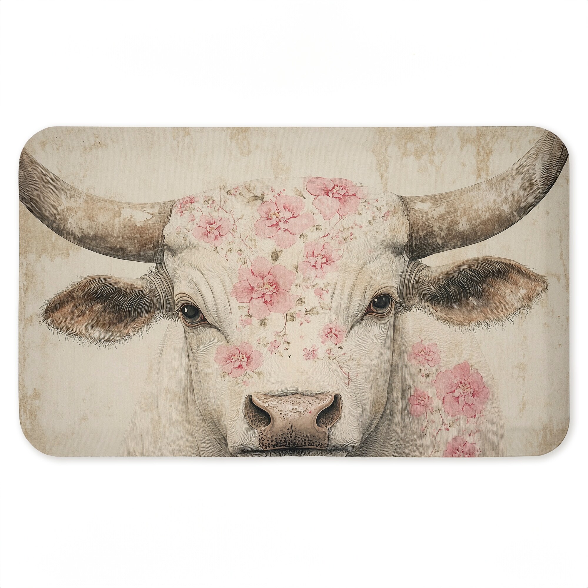 Stupell Cattle Floral Cow Farmhouse Printed Anti-Fatigue Floor Mat, 30"x18"