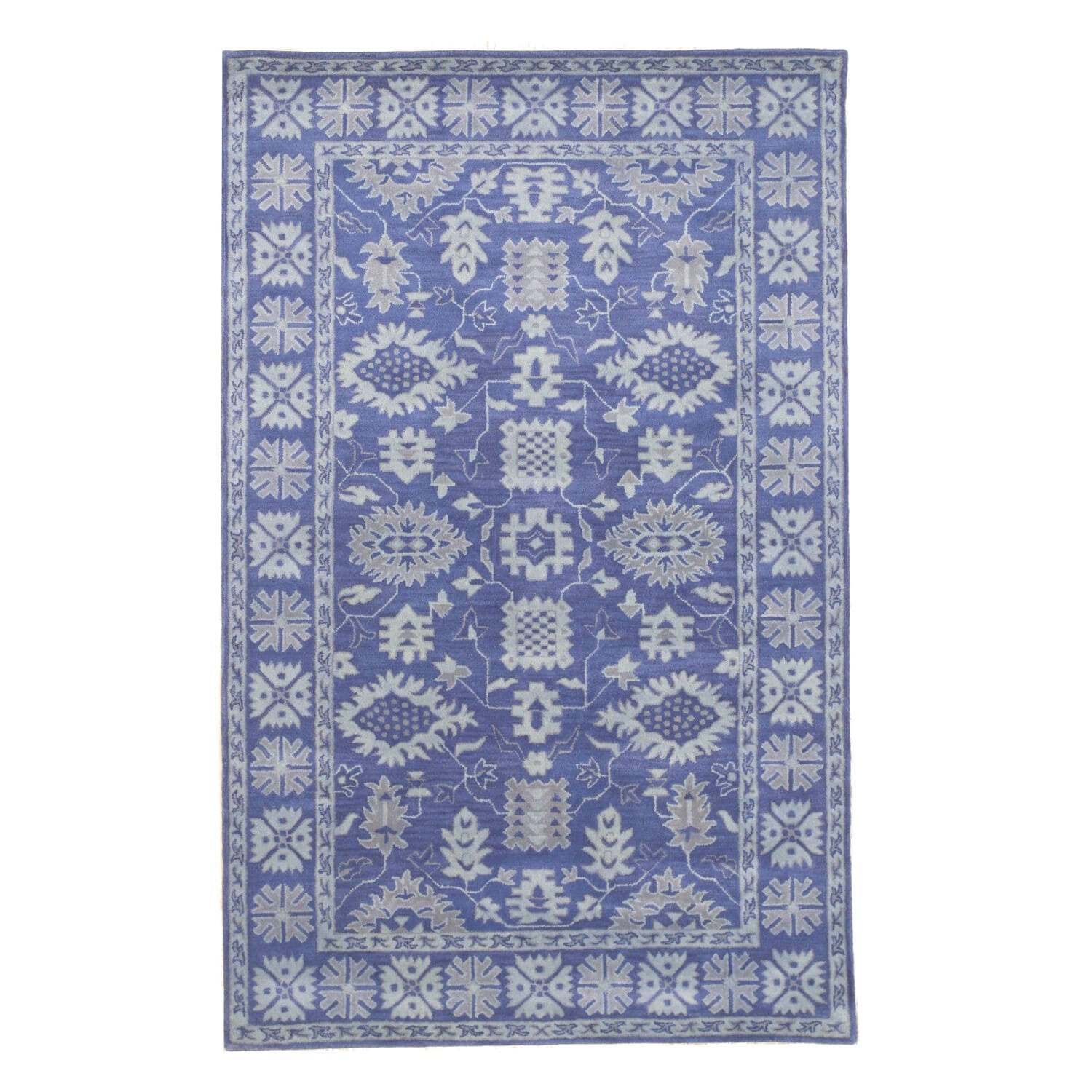 Blue Hand-Tufted Wool Traditional Overdyed Rug, 5' x 8' - Monochrome modern style with soft wool pile. - N/A