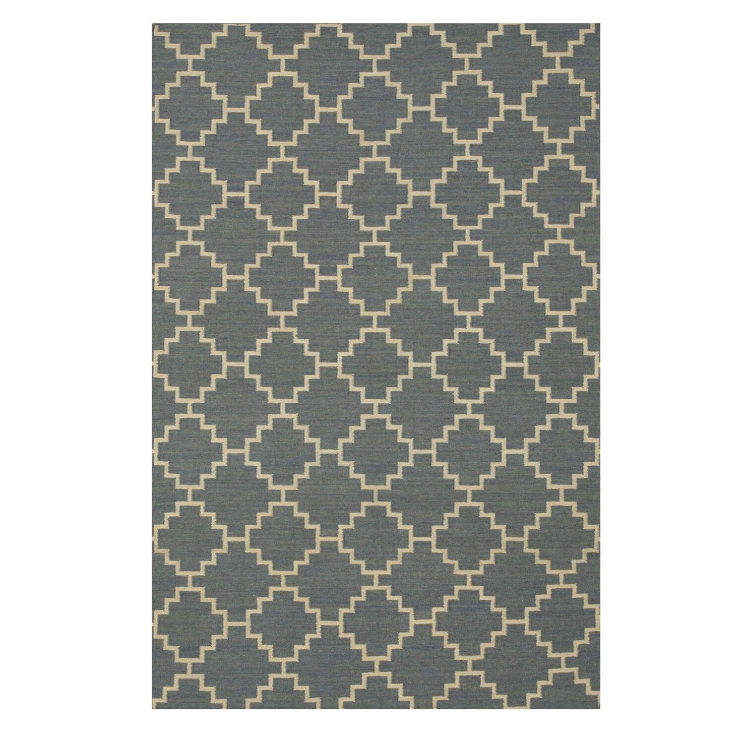 Blue Wool Flatweave Reversible Rug 8x10 - Elegant Trellis Design with Modern Flatweave Texture - N/A