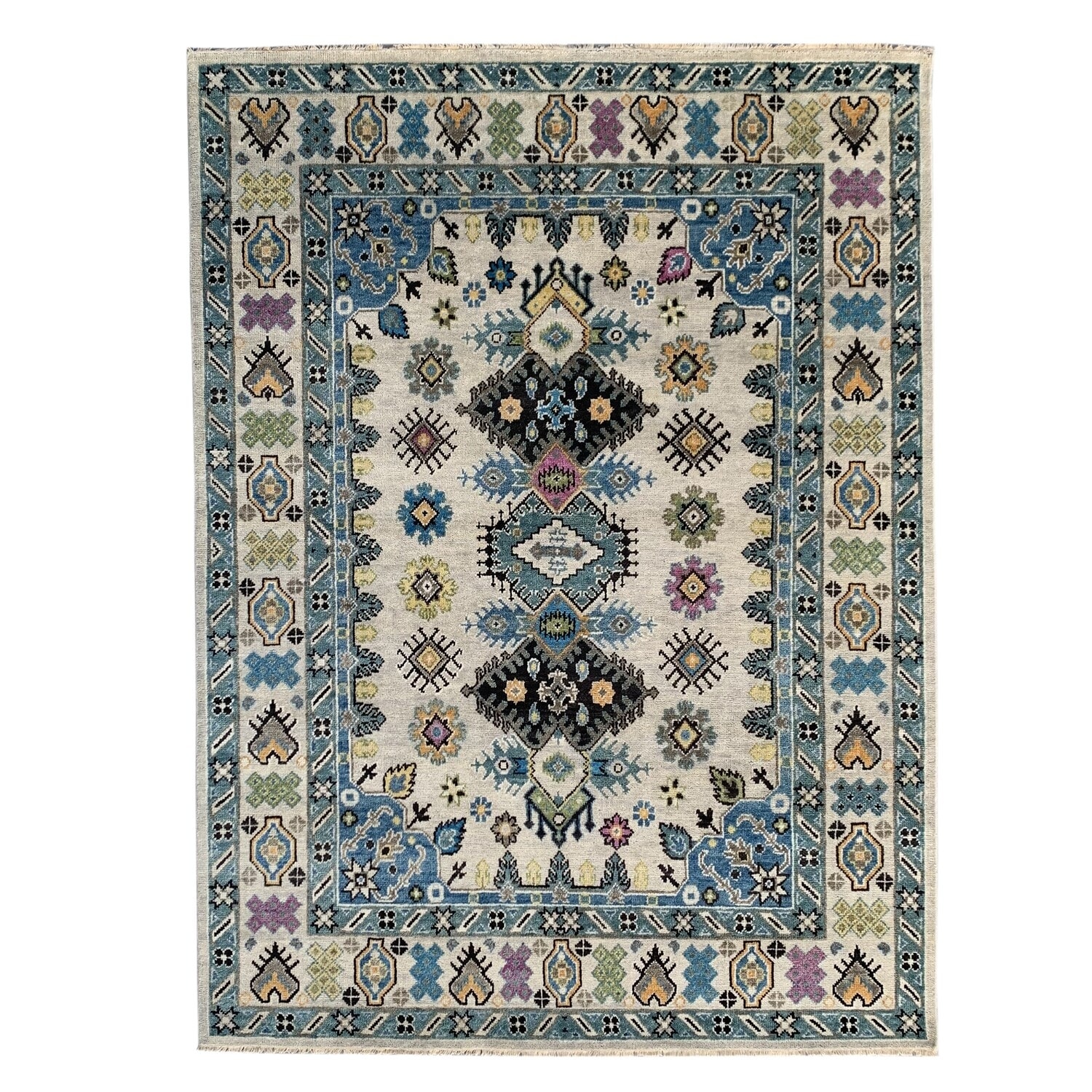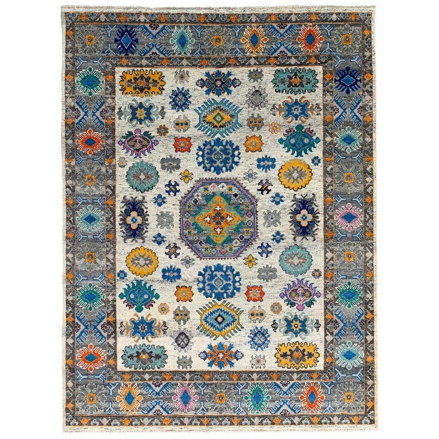 Ivory Gray Hand Knotted Wool Transitional Rug 9' x 12' - Ornamental Medallion 0.5" Pile Stain Resistant - N/A