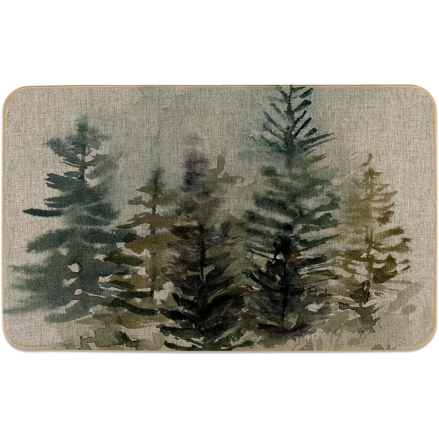 Misty Tree Line Indoor/Outdoor Natural Linen Look Floor Mat with Recycled Rubber Back Manufactured in The USA 29.5” x 17.75”