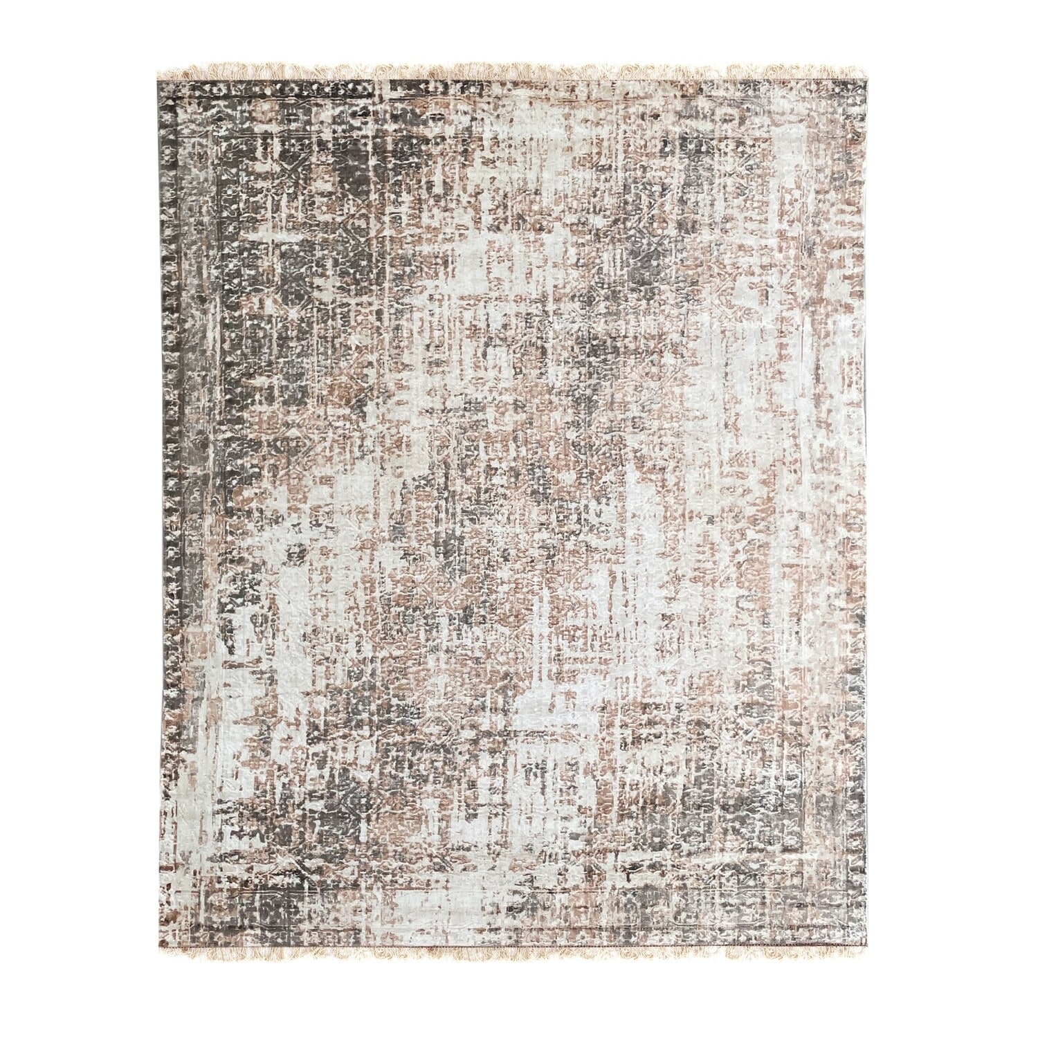 Ivory Gray Hand Knotted Wool Transitional Modern Rug 7' x 9' - Ornamental Medallion 0.5" Pile - N/A