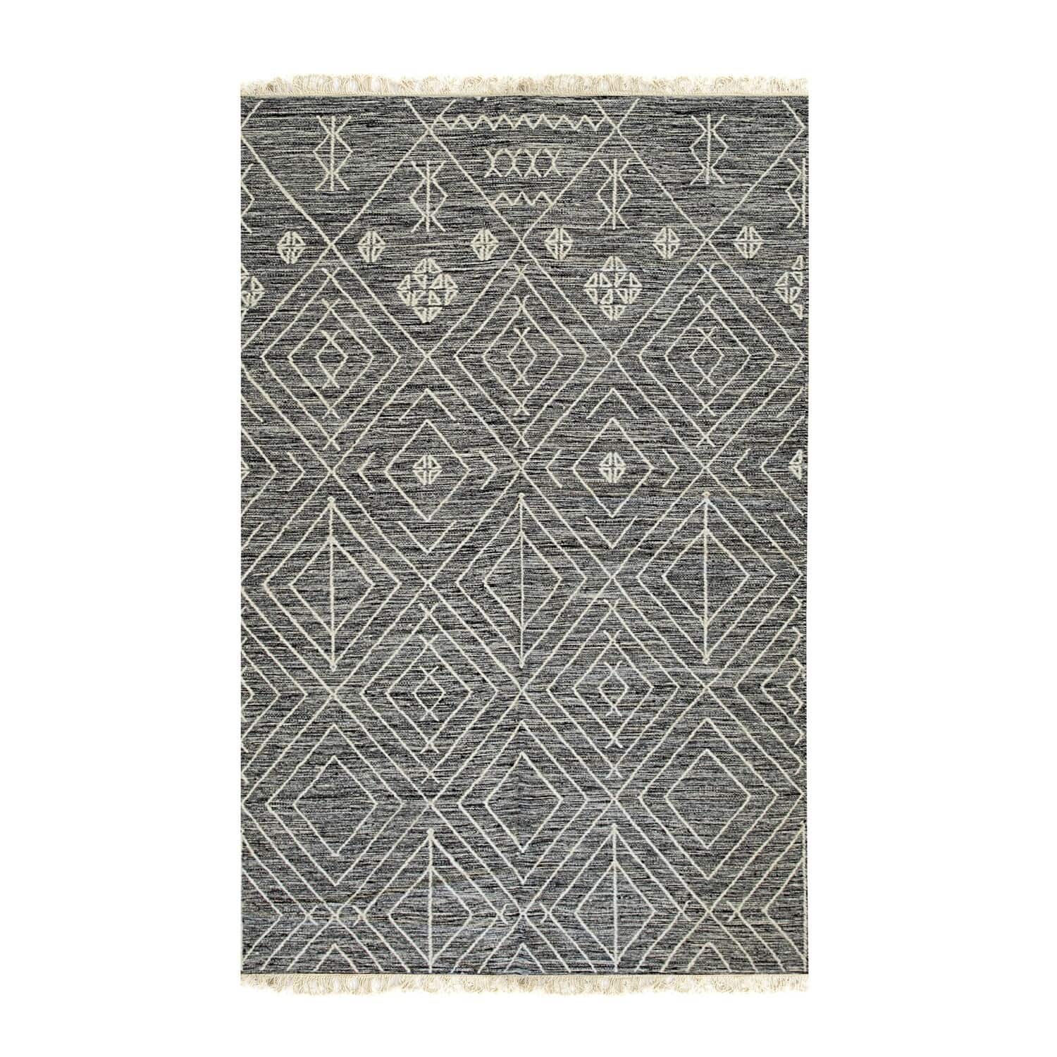 Charcoal Handwoven Wool Contemporary Kilim Rug 5' x 8' - Flat Weave Durable Pile-Less Textile Design - N/A