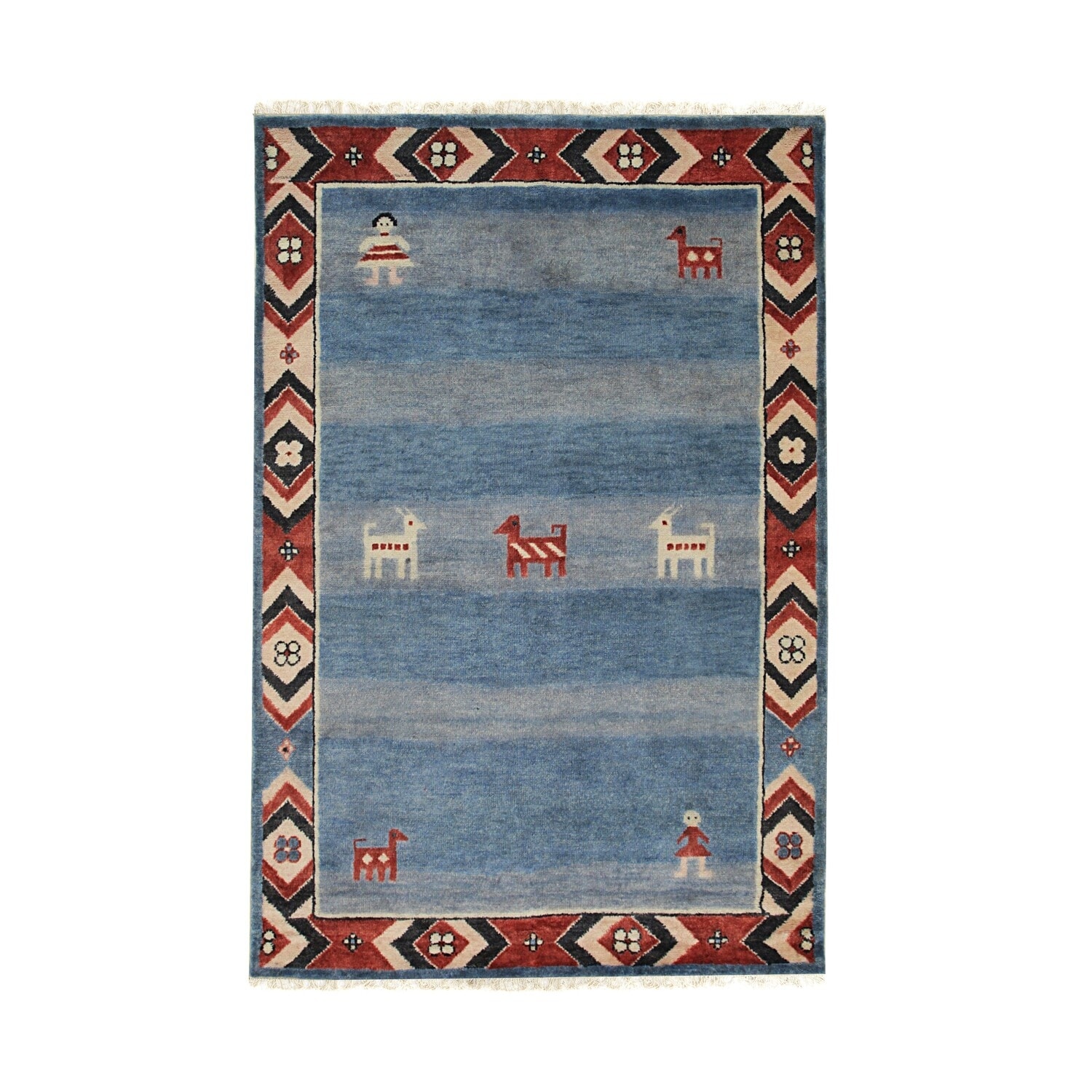 Blue Hand Knotted Wool Traditional Modern Rug 6' x 9' - Low Pile Dense Soft High Traffic Durable - N/A