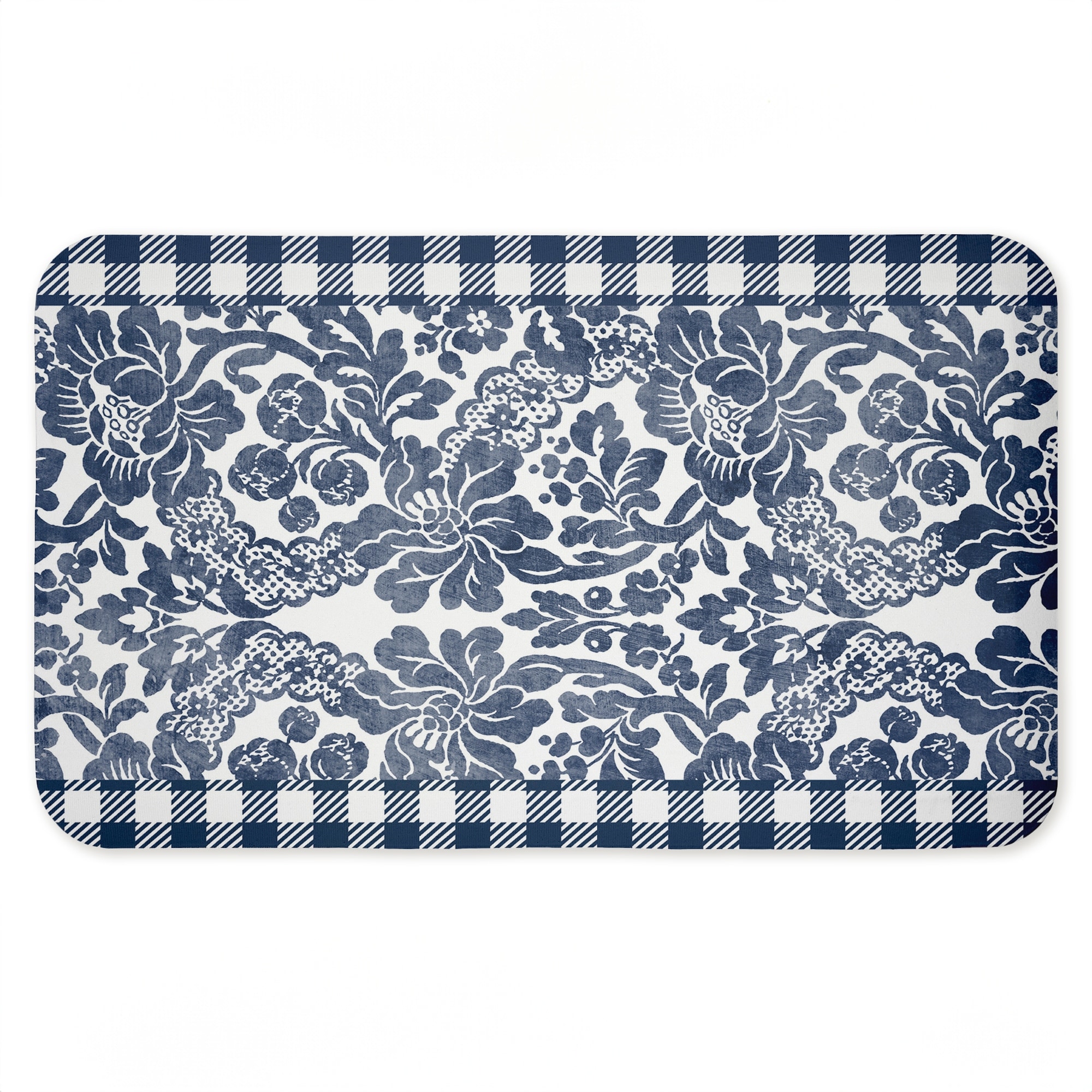 Stupell Navy Gingham Florals Printed Anti-Fatigue Floor Mat, design by Kim Allen, 30"x18"