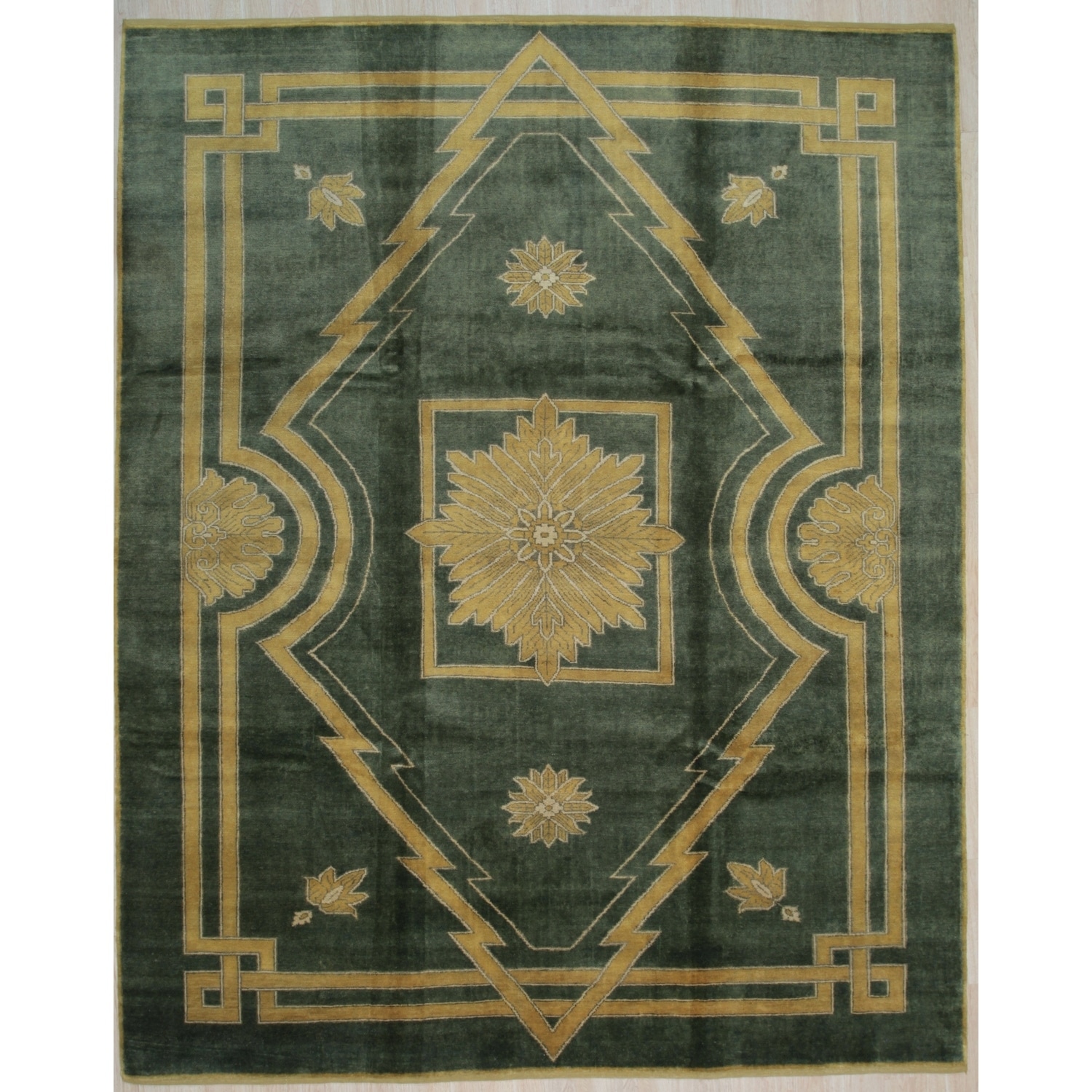 Green Handmade Wool Traditional Rug 8' x 10' - Hand Knotted Natural Dyes Soft Pile Cotton Foundation - N/A