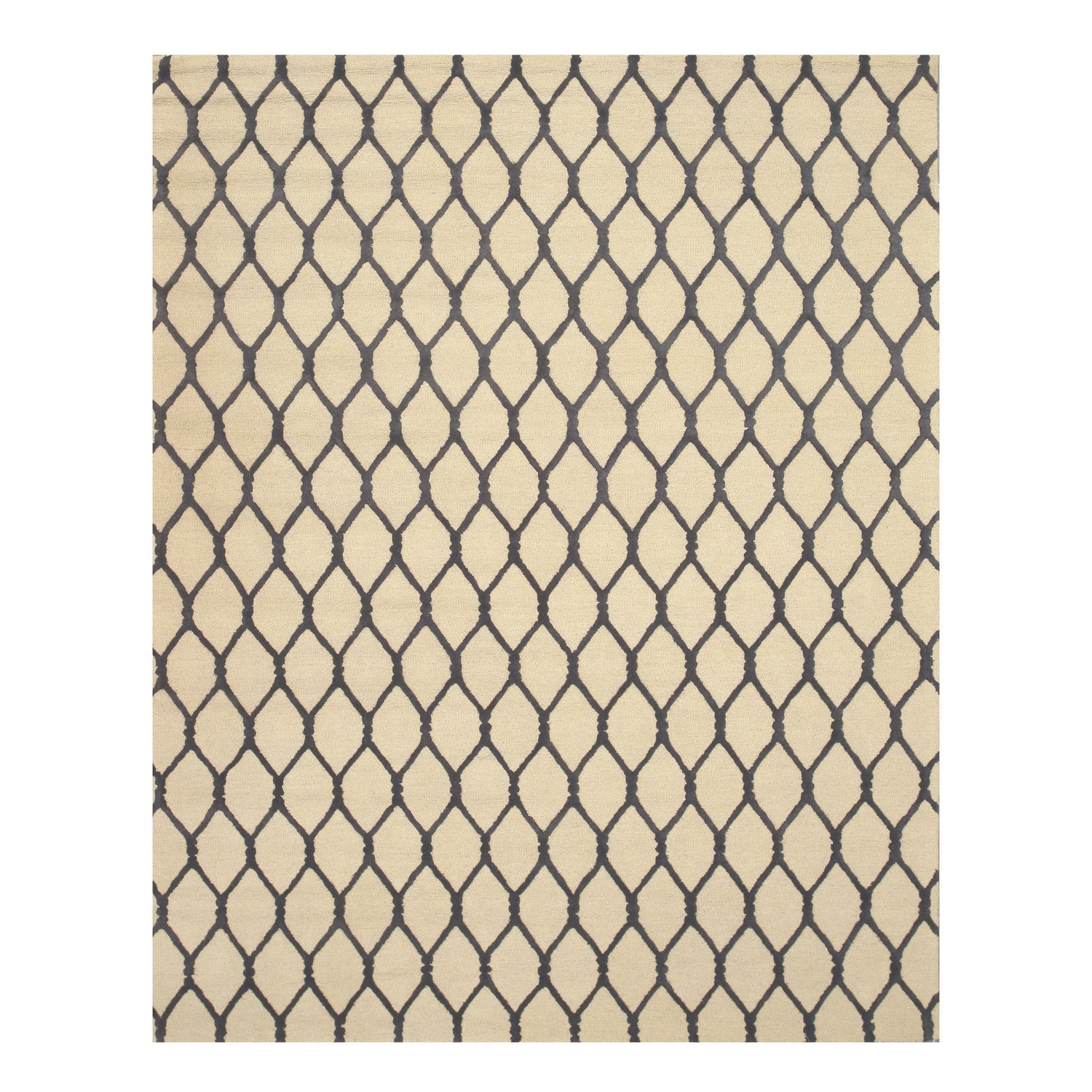 Beige Hand-Tufted Wool Chain-Link Transitional Rug, 7'9 x 9'9 - Elegant and plush wool rug with versatile style. - N/A