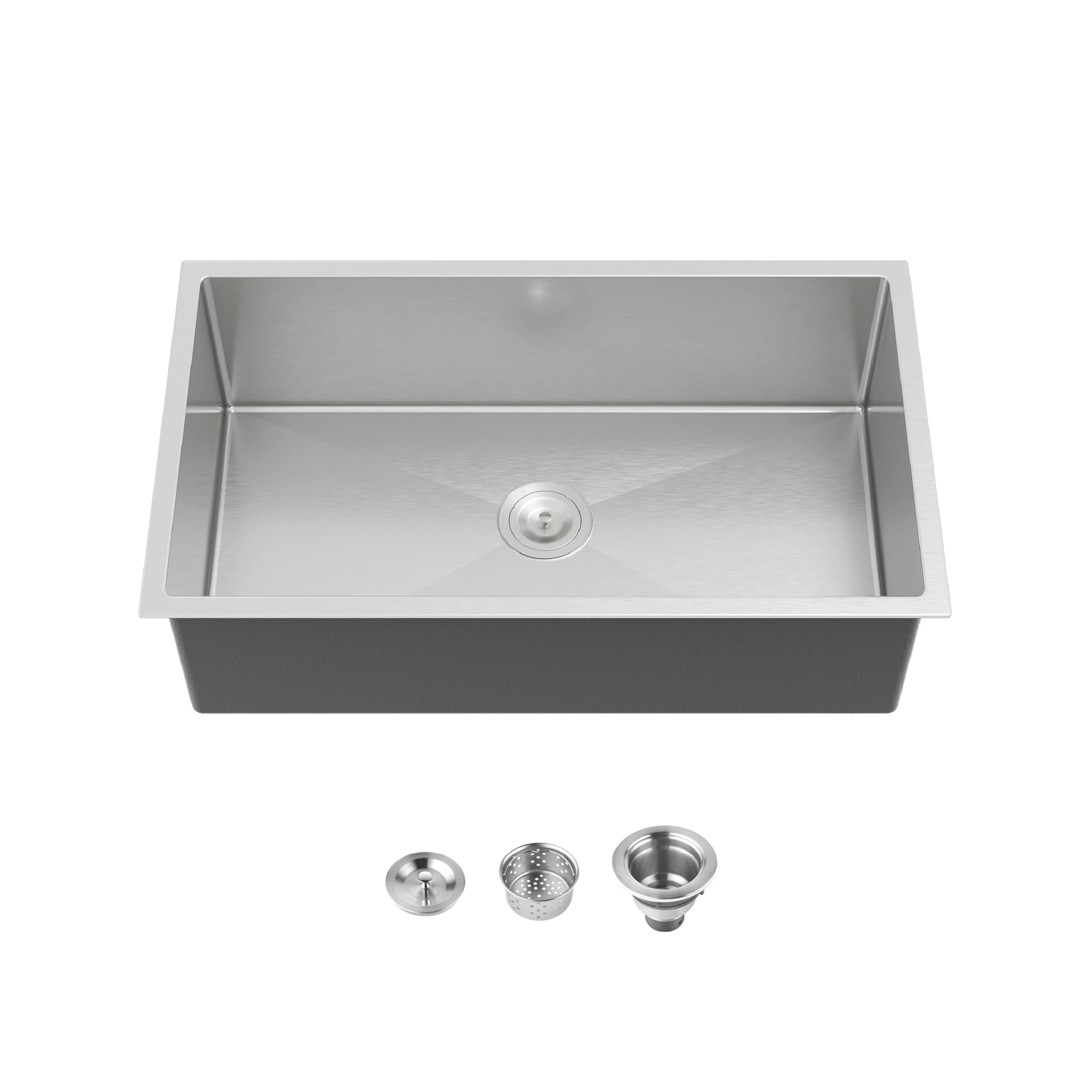 Stainless Steel Kitchen Sink, 33″x19″ Drop In Single Bowl, Undermount Handmade Sink, with US Standard Drain and Hook