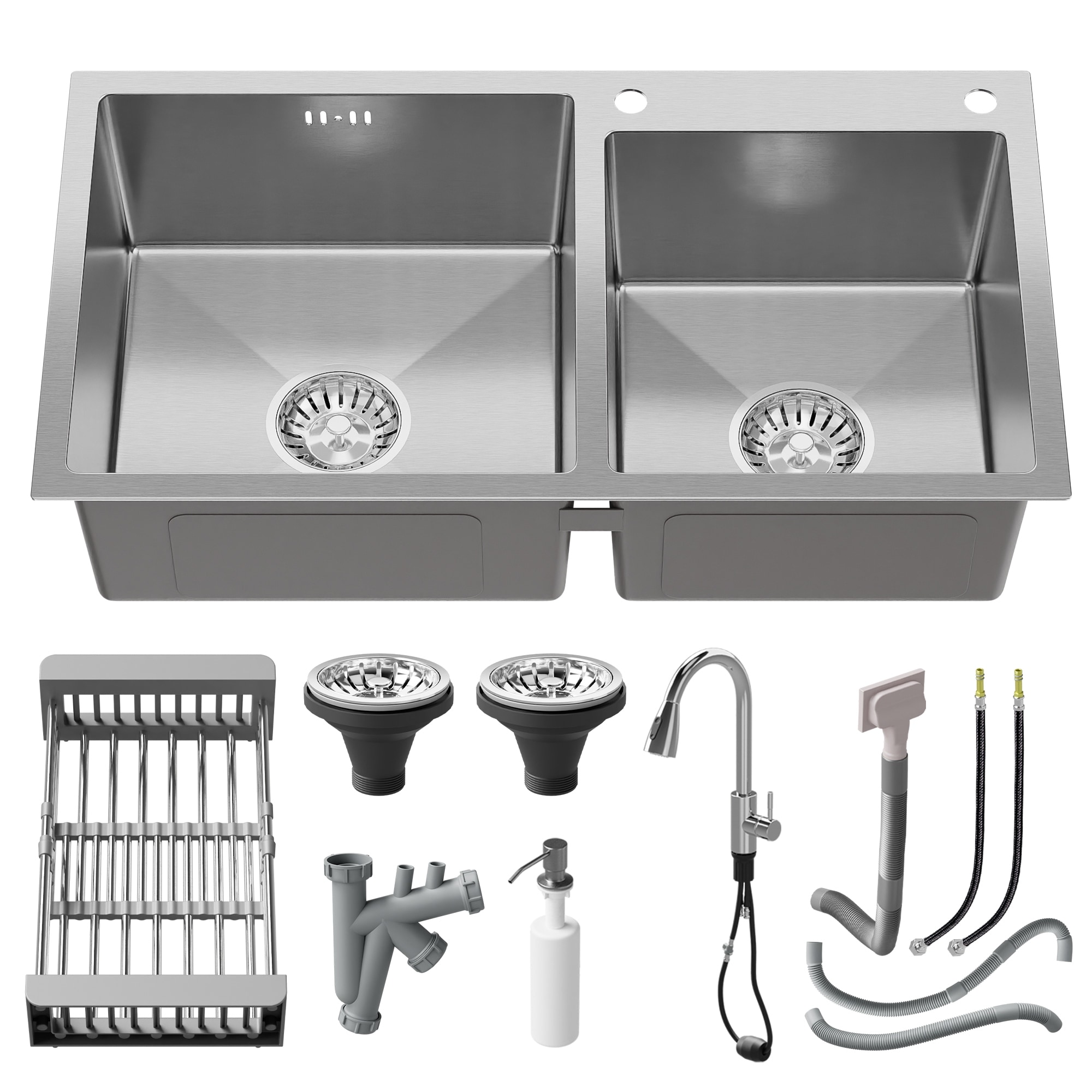 Drop-in Double Bowl 304 Stainless Steel Kitchen Sink with Accessories