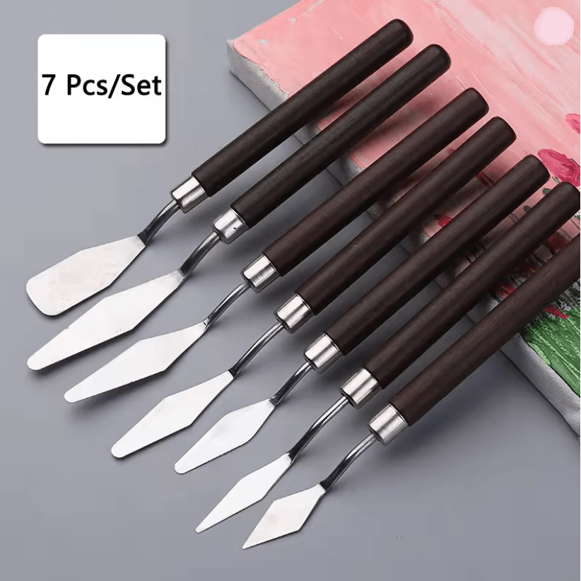 Stainless Steel Artist Palette Knife Set 1 3 5 7 Piece Flexible Spatulas For Oil, Acrylic, And Cake Decorating 7 Pcs