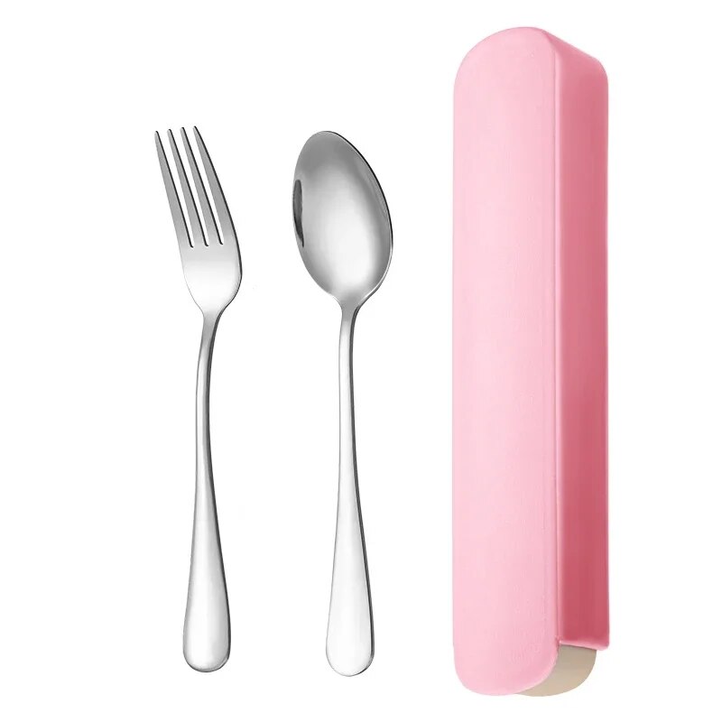Portable Stainless Steel Cutlery Set With Storage Box Ideal For Travel, Camping, Household Use Red B