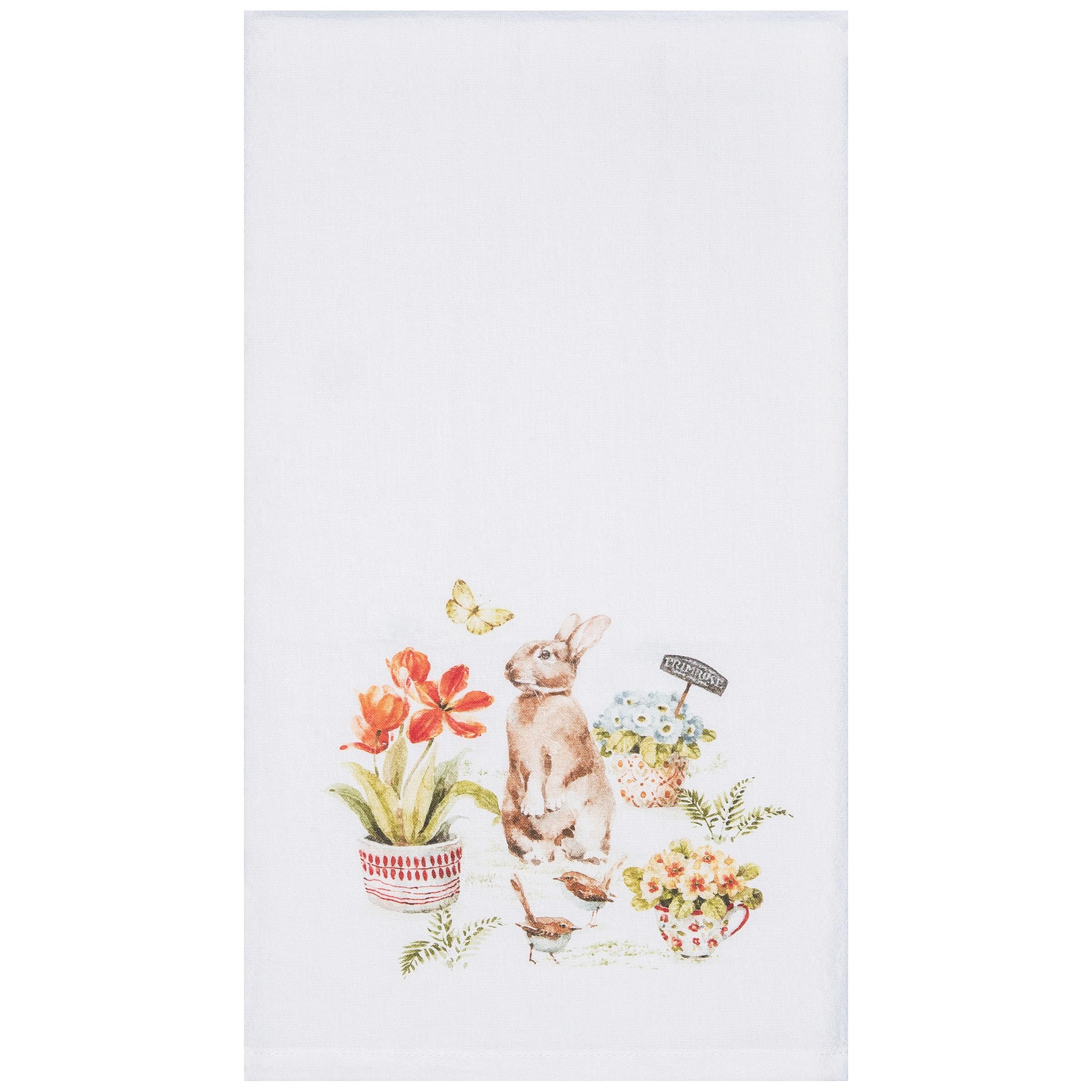 "Cotton Tails & Bunny Trails" Easter Rabbit Embroidered Cotton Waffle Weave Kitchen Dishtowel