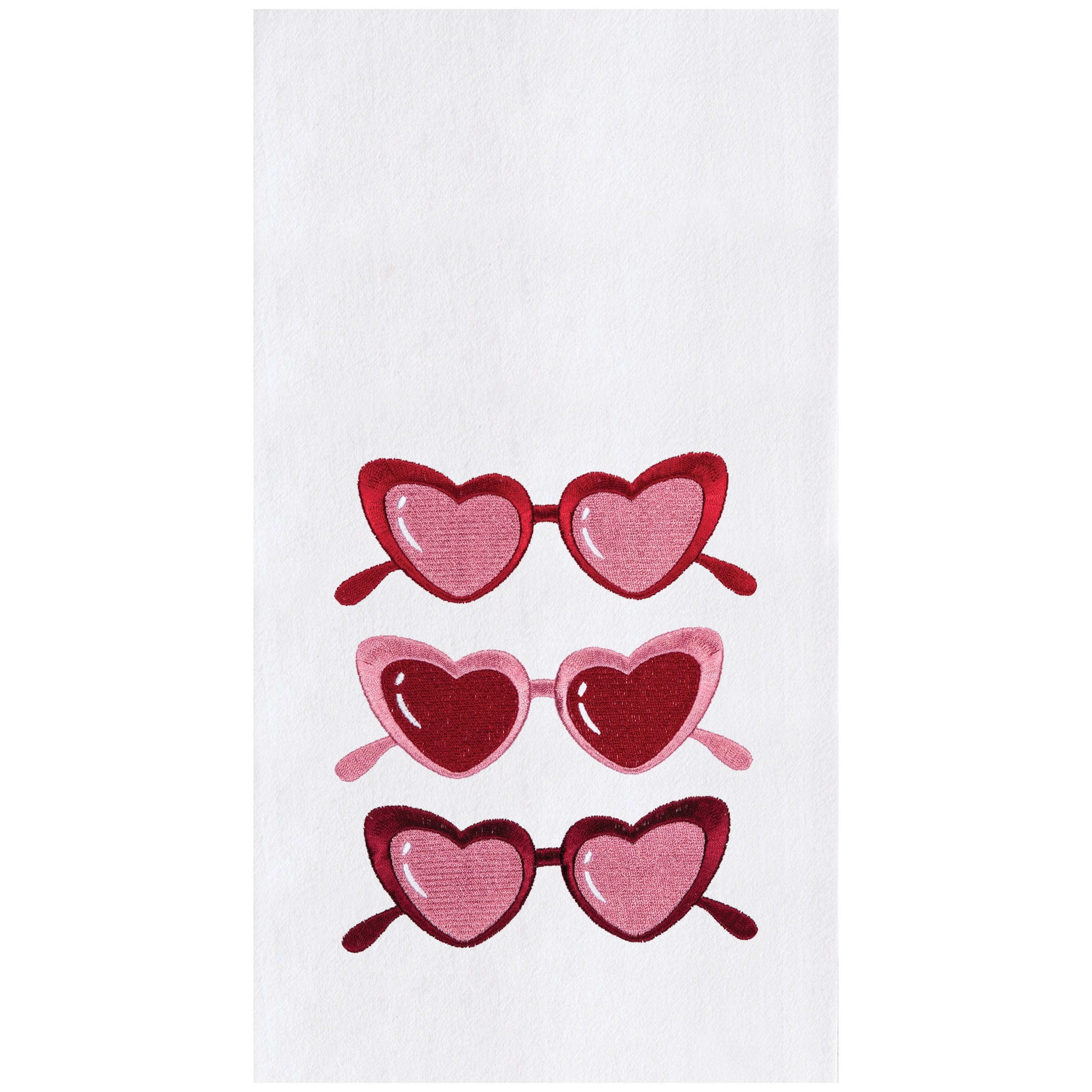 Heart Glasses St. Valentines Kitchen and Bathroom Embroidered Hand Towel