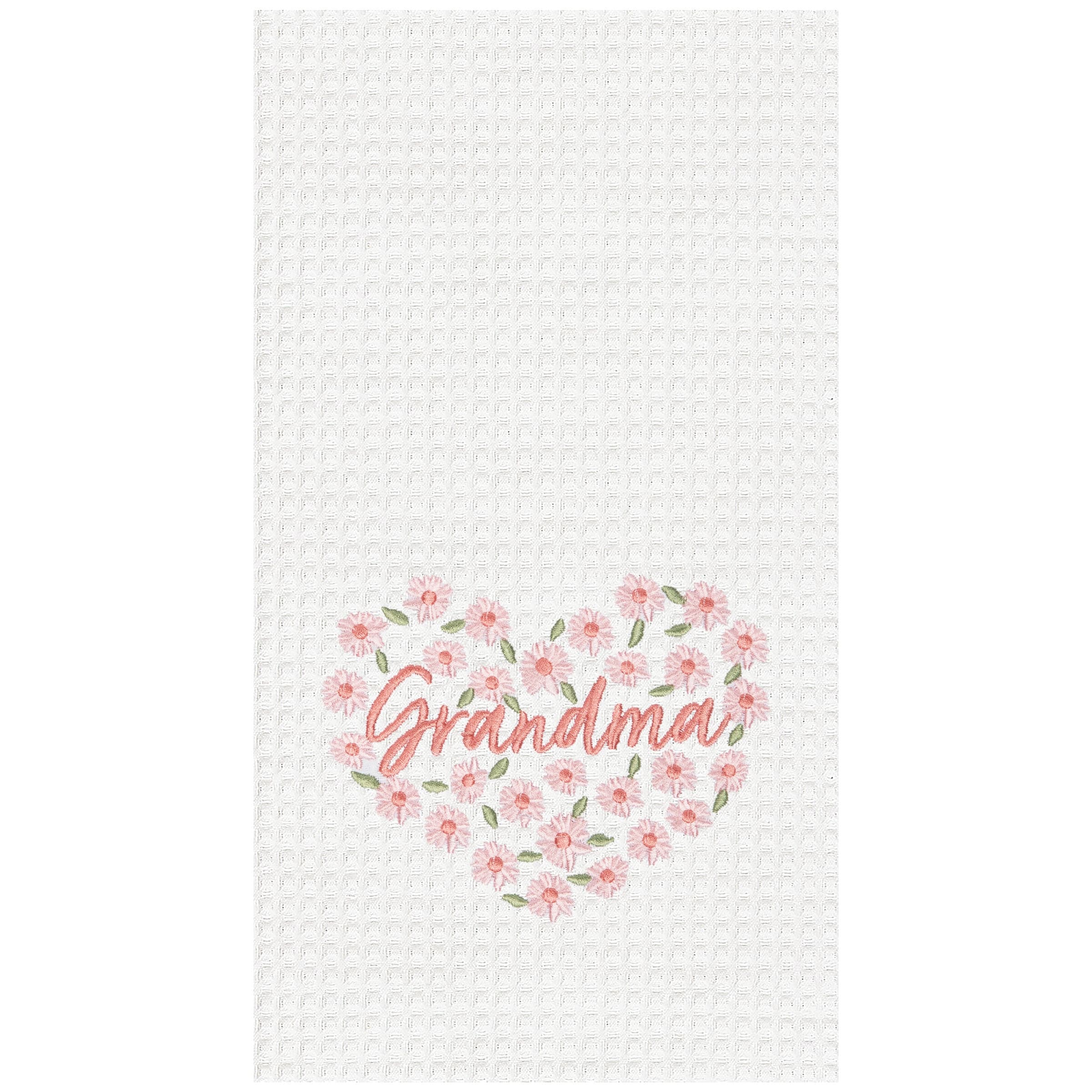 Grandma Mother's Day Floral Kitchen and Bathroom Embroidered Waffle Hand Towel