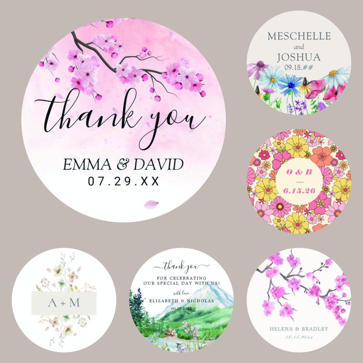 Floral Customized Wedding Labels, Vinyl Stickers For Party Decorations, Gift Box Decals, DIY Craft Supplies round 192pcs 4x4cm