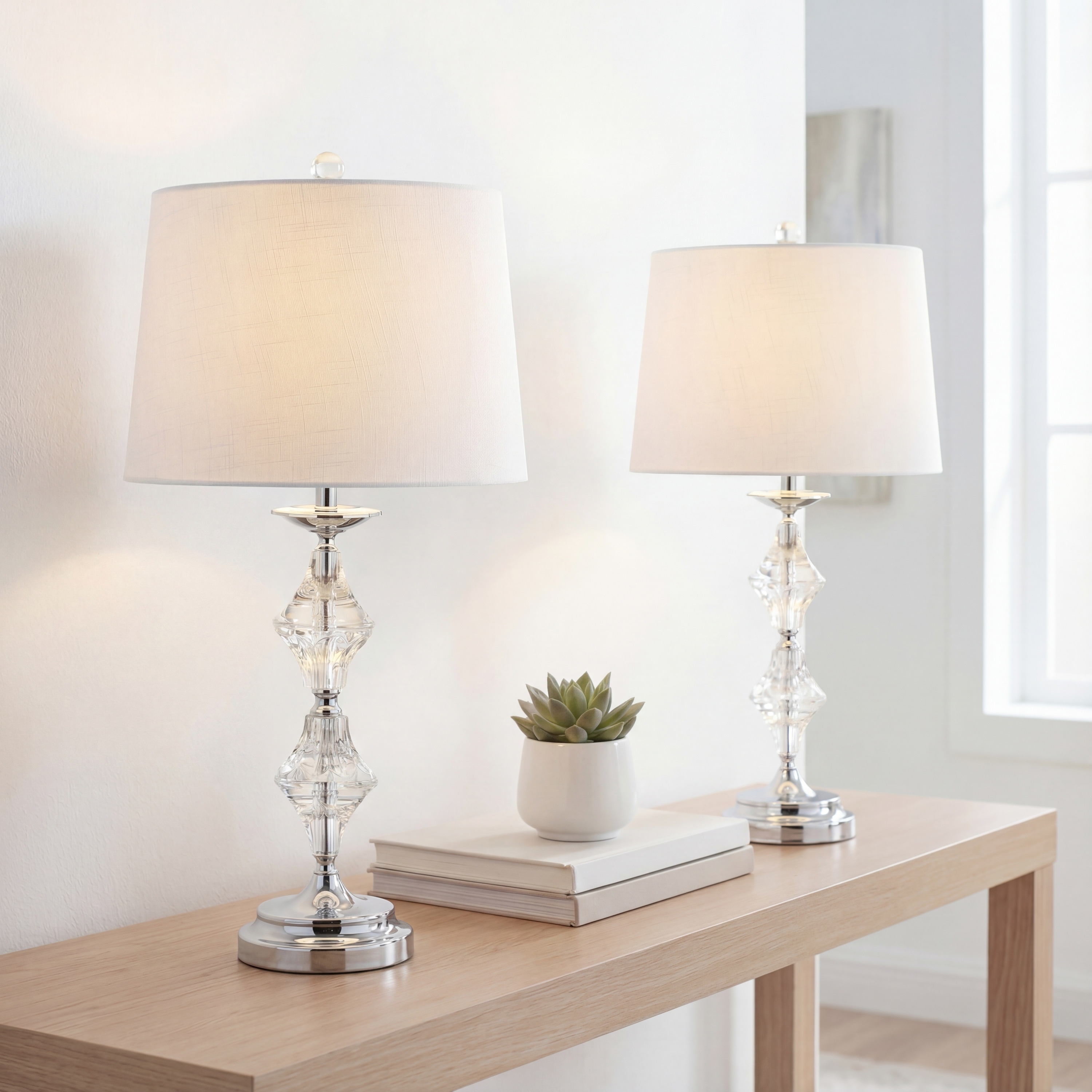 Chloe 27.5" Crystal LED Table Lamp, Clear/Chrome (Set of 2) by JONATHAN Y