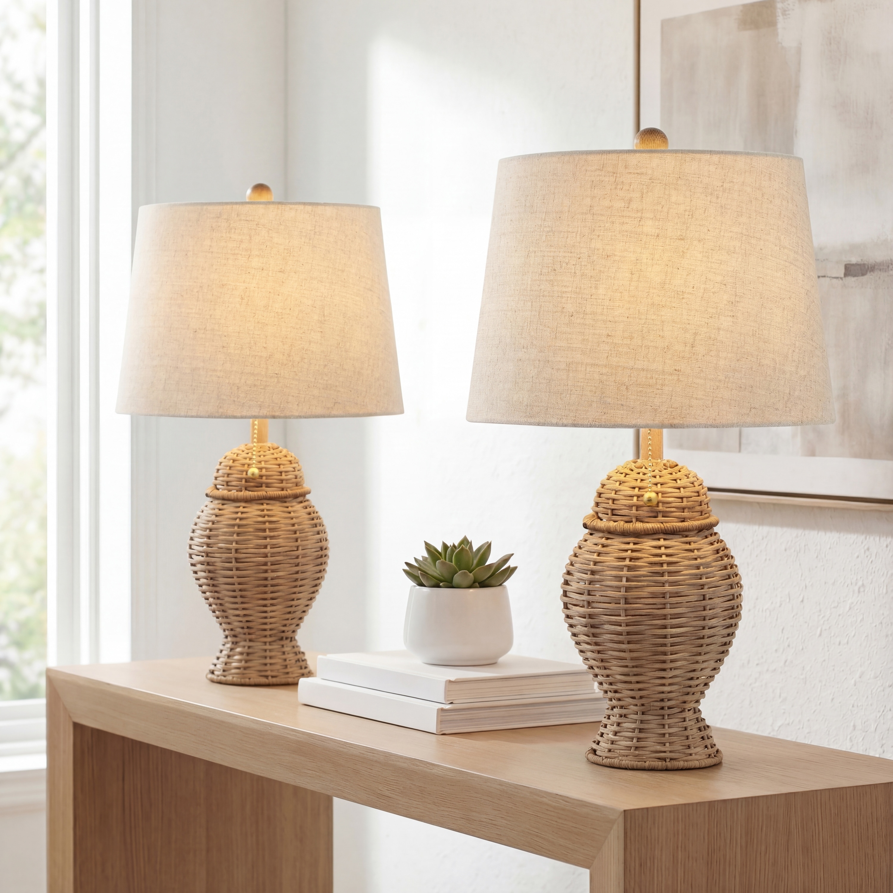 Set of 2 Bedside Lamps with Bulbs